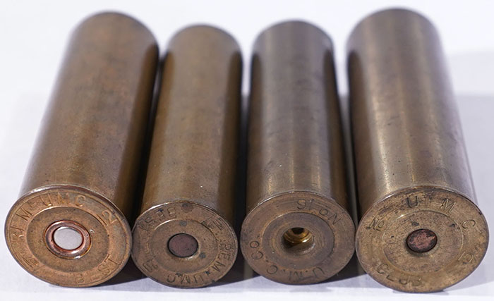 Lot of 4 Brass NPE shot shells. Grade: Excellent - Value: 6 to 40