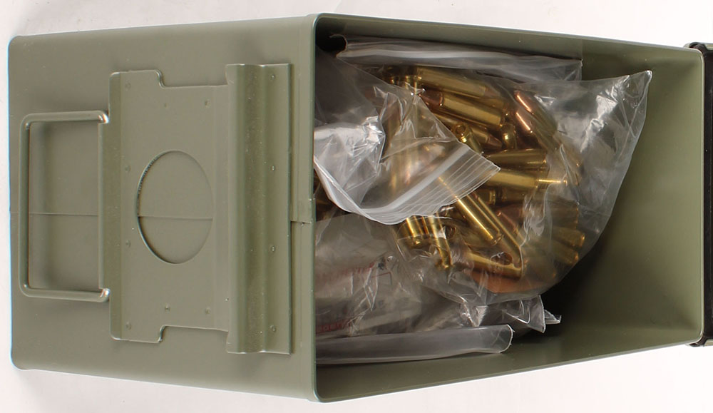 M2A1, .50 Cal ammo can, filled with 400 Rds. Of handload/reloads of .350 Legend, ammo is excellent. Grade: Excellent ++ - Value: 60 to 180