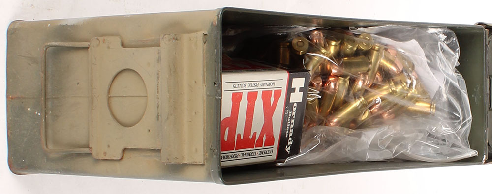 US, M19A1, .30 Cal ammo can, filled with Approx 500 Rds. Of .40 S&W handloads/reloads, mix bullet weight & type, ammo is excellent. Grade: Excellent + - Value: 150 to 400