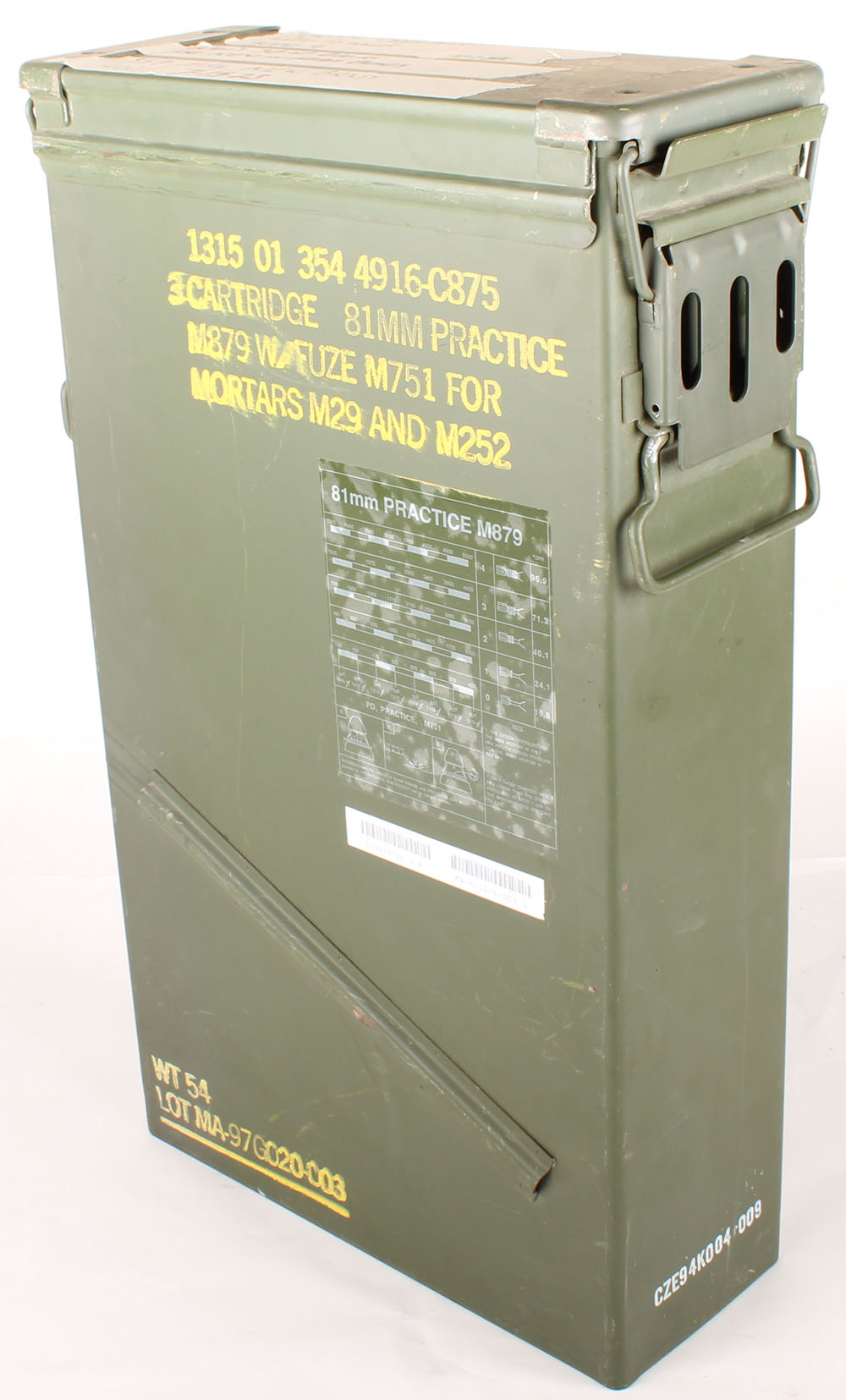 US, PA-154, 120mm shell can for two, empty, inside is clean with no rust. Grade: Excellent ++ - Value: 20 to 50