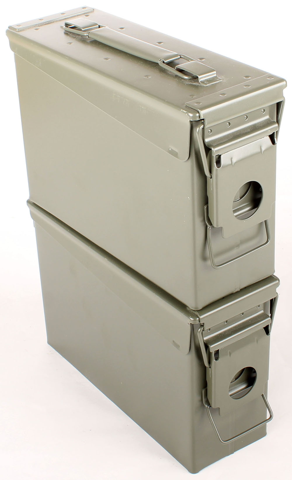 | Lot of two, M19A1 .30 Cal metal ammo cans, both empty, insides o...