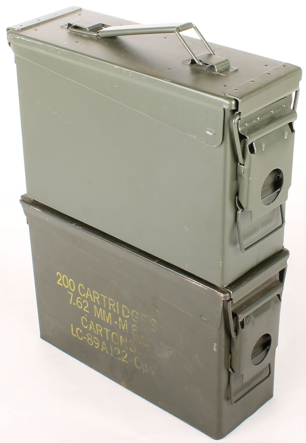 | Lot of two, M19A1 .30 Cal metal ammo cans, both empty, insides o...