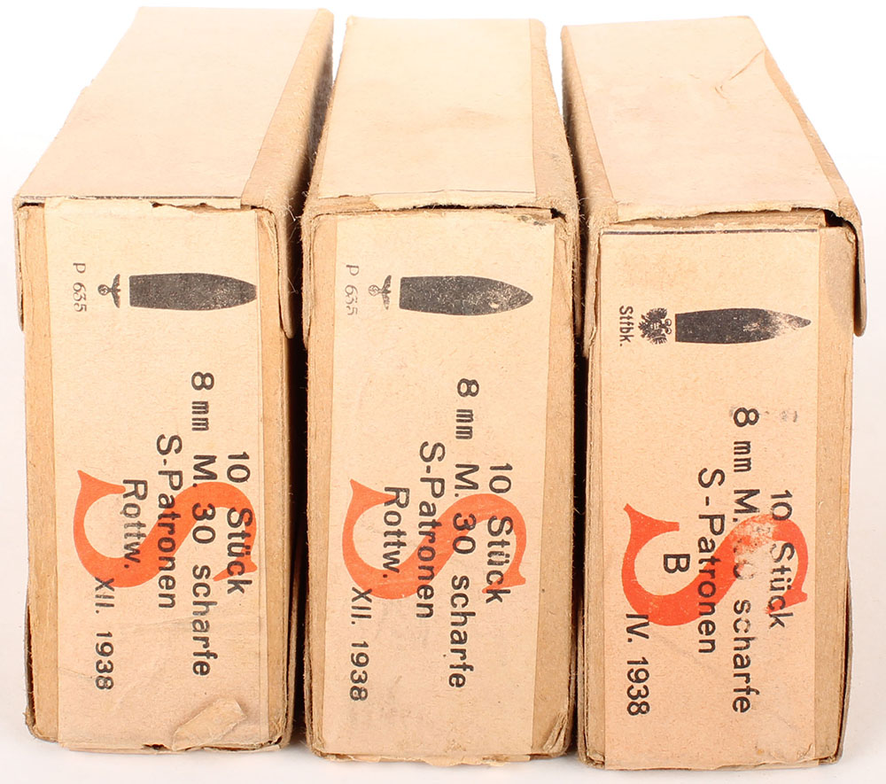| Lot of three, Austrian, 8mm M.30 Scharfe S-Patronen (8x56mmR), 1...