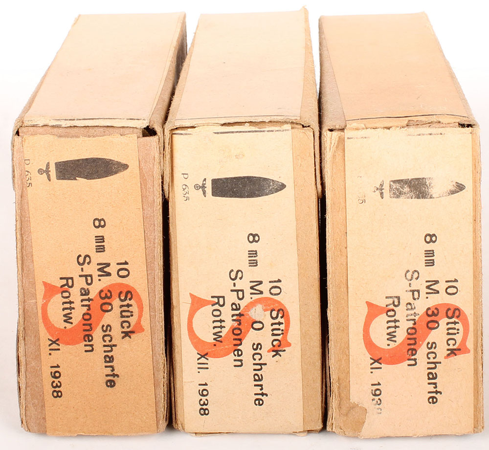 | Lot of three Austrian, 8mm M.30 Scharfe S-Patronen (8x56mmR), 10...