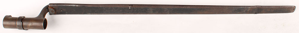 US, M1873 Cadet bayonet with sheath, blued blade, socket has toned brown, no US marking visible on blade. These were the scaled down bayonets for the M1873 trapdoor cadet rifle, which themselves were scaled down version of the infantry rifle. Only 22,000 cadet rifles were made over the span of its 20 years of production, with that amount of bayonets made to match. Grade: Very Good ++ - Value: 80 to 240