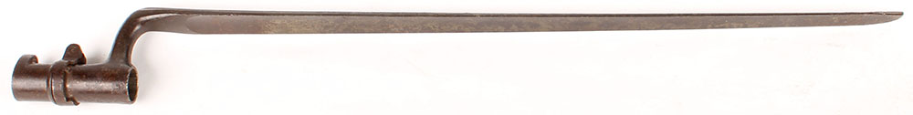 Argentina, M1879 Rolling block socket bayonet, bayonet has mostly toned brown with some areas of bare metal gray, the right side of the socket marked ''H''. Grade: Very Good - Value: 40 to 120