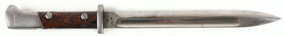 RARE!, Polish, Society of the Motors Factory Perkun, WZ 29 Bayonet, with sheath & frog. Smooth wood grips, metal in unfinished. The left side of the blade is marked with a crowned eagle over ''W.P.'' (Wojsko Polskie = Polish Army). The right side of the blade is marked ''A'', ''PERKUN'', ''167882''. The right side of the guard is marked ''481855''. The sheath has finish thinning & spots starting to tone brown. The leather frog has some cracks & stains. A very rare bayonet with not many being made, & most of what was produced was either destroyed, or captured & modified by the Germans for use with their rifles. Grade: Excellent - Value: 250 to 500