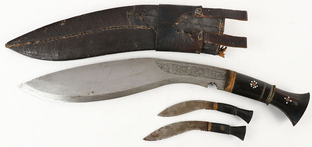 | Nepalese, Gurka, Kukri set, with one large knife & two smaller ...