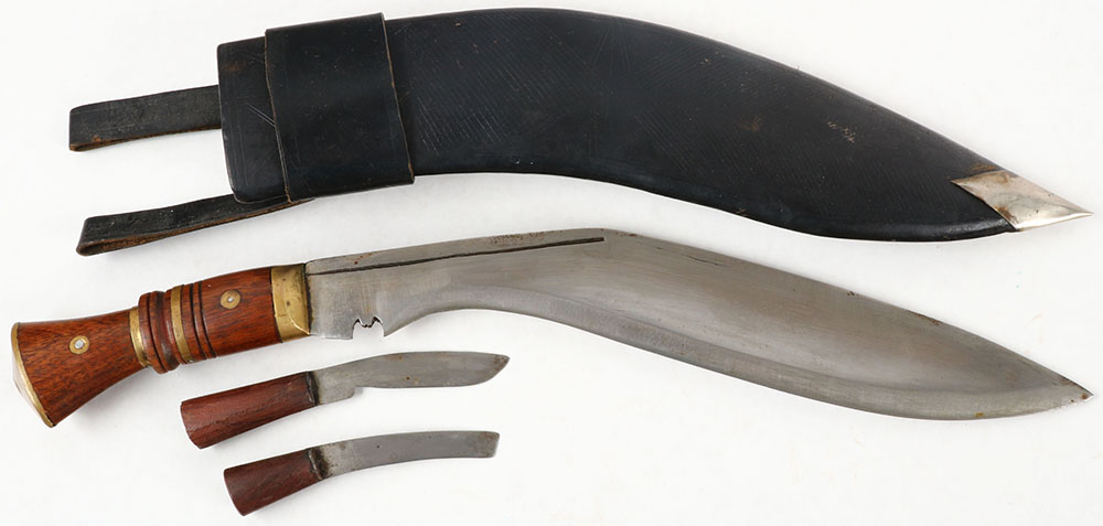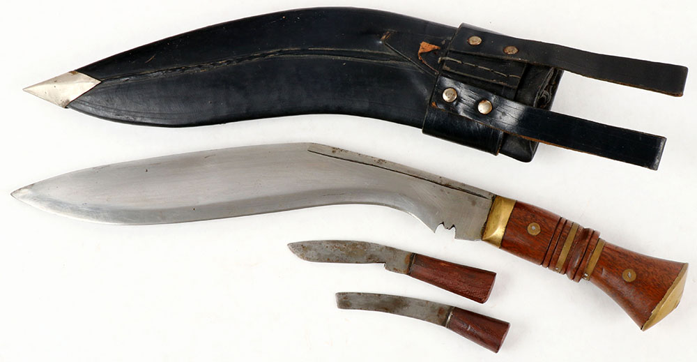 | Nepalese, Gurka, Kukri set, with one large knife & two smaller ...