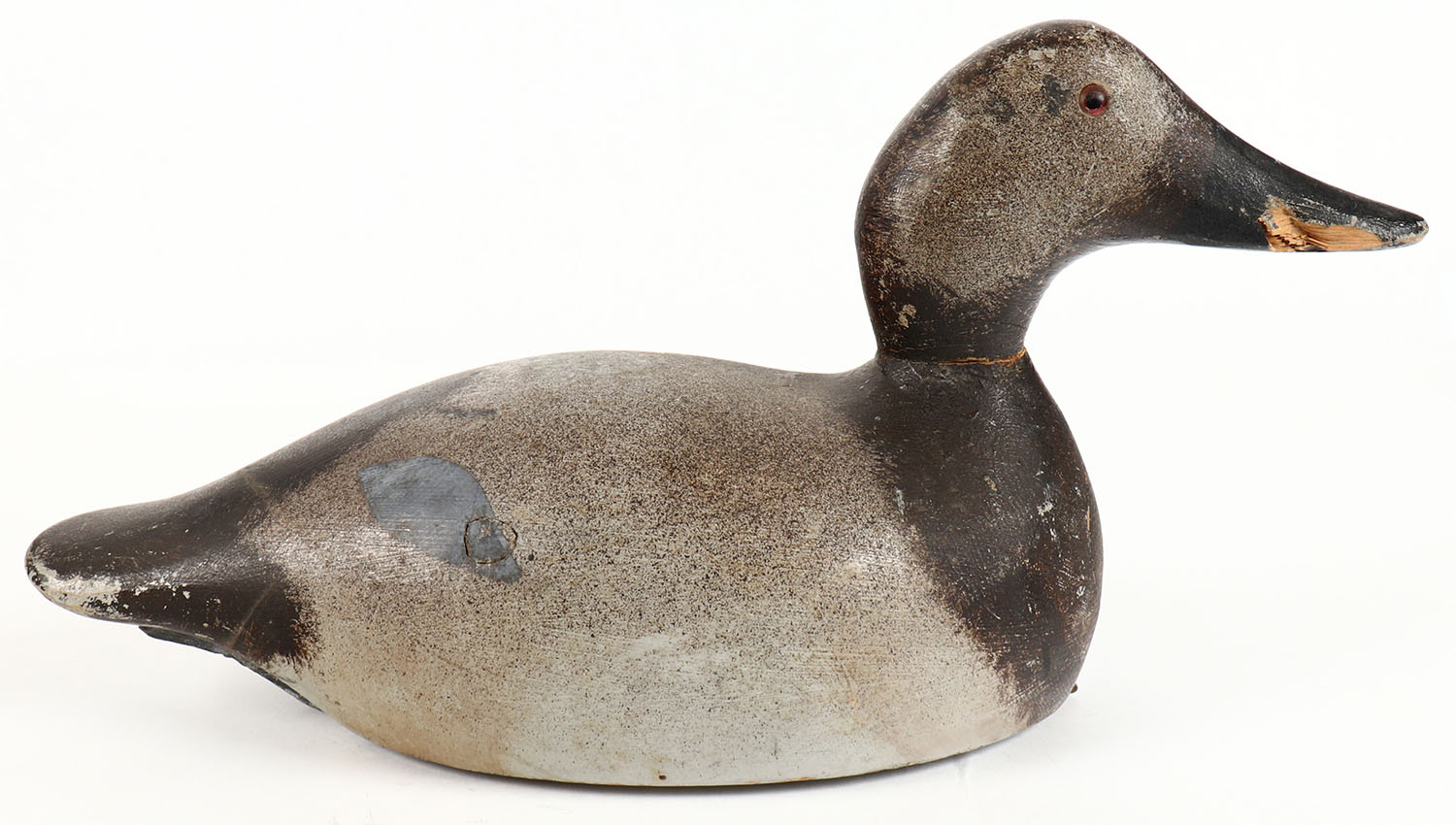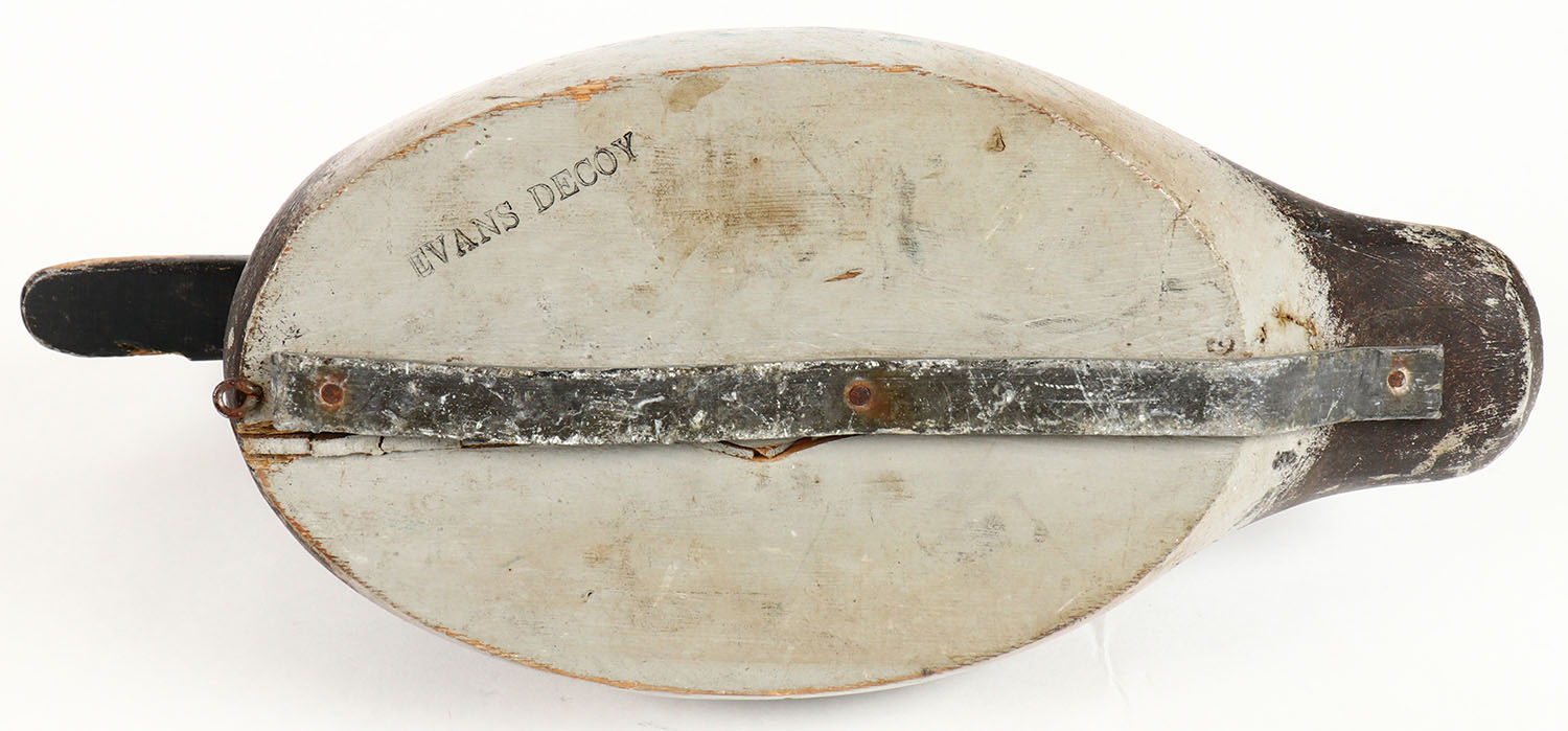 Canvasback Hen by Evans Decoy Company, Ladysmith, WI, 1921-1932, Standard grade, glass eyes, hollow wood, original paint shows wear, 14 1/2'' OAL. Grade: Very Good ++ - Value: 100 to 300