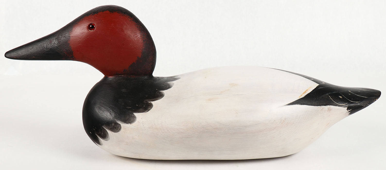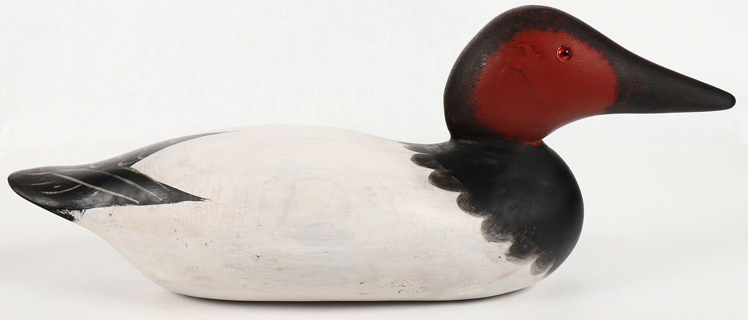 Redhead Drake by Mason Decoy Company, Detroit, MI, 1896-1924, Standard Grade, glass eyes, repaint, solid wood, 16'' OAL. Grade: Excellent - Value: 30 to 100