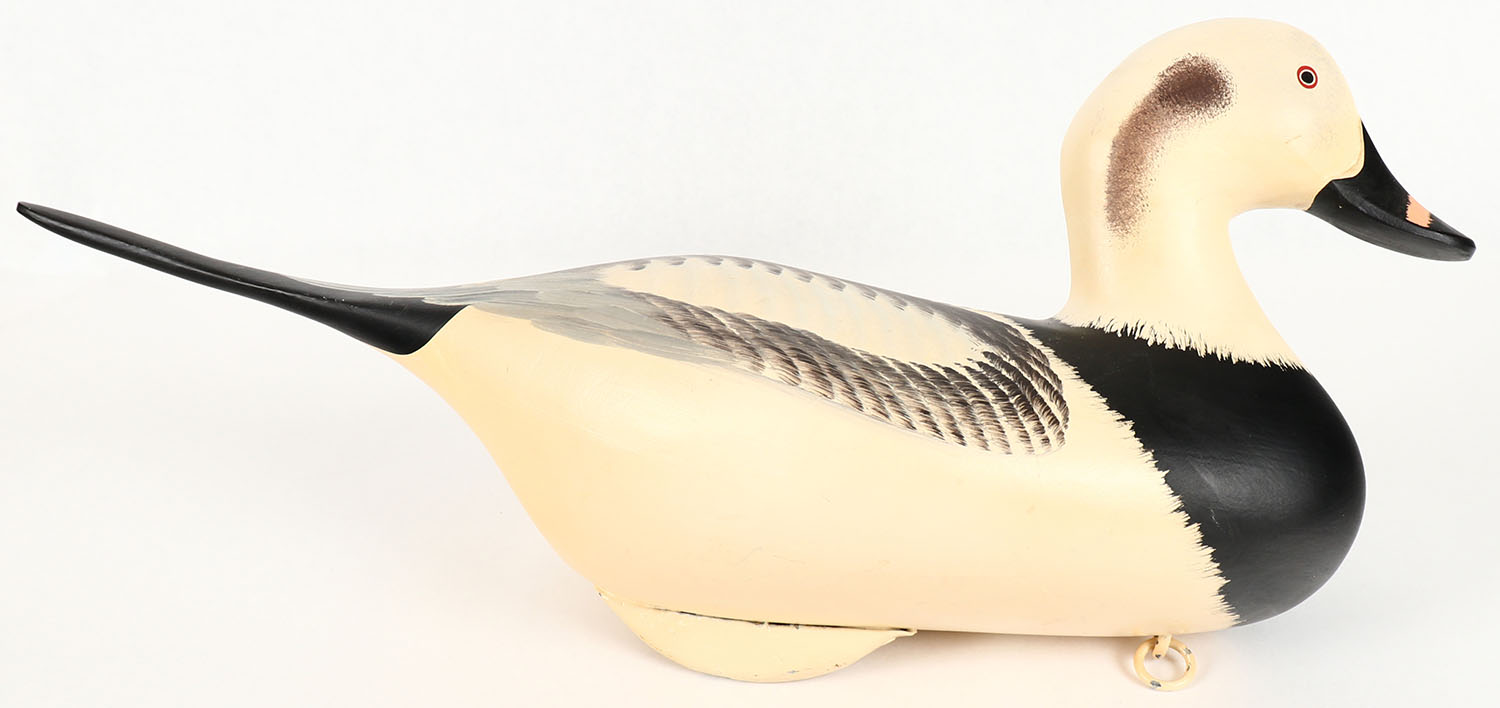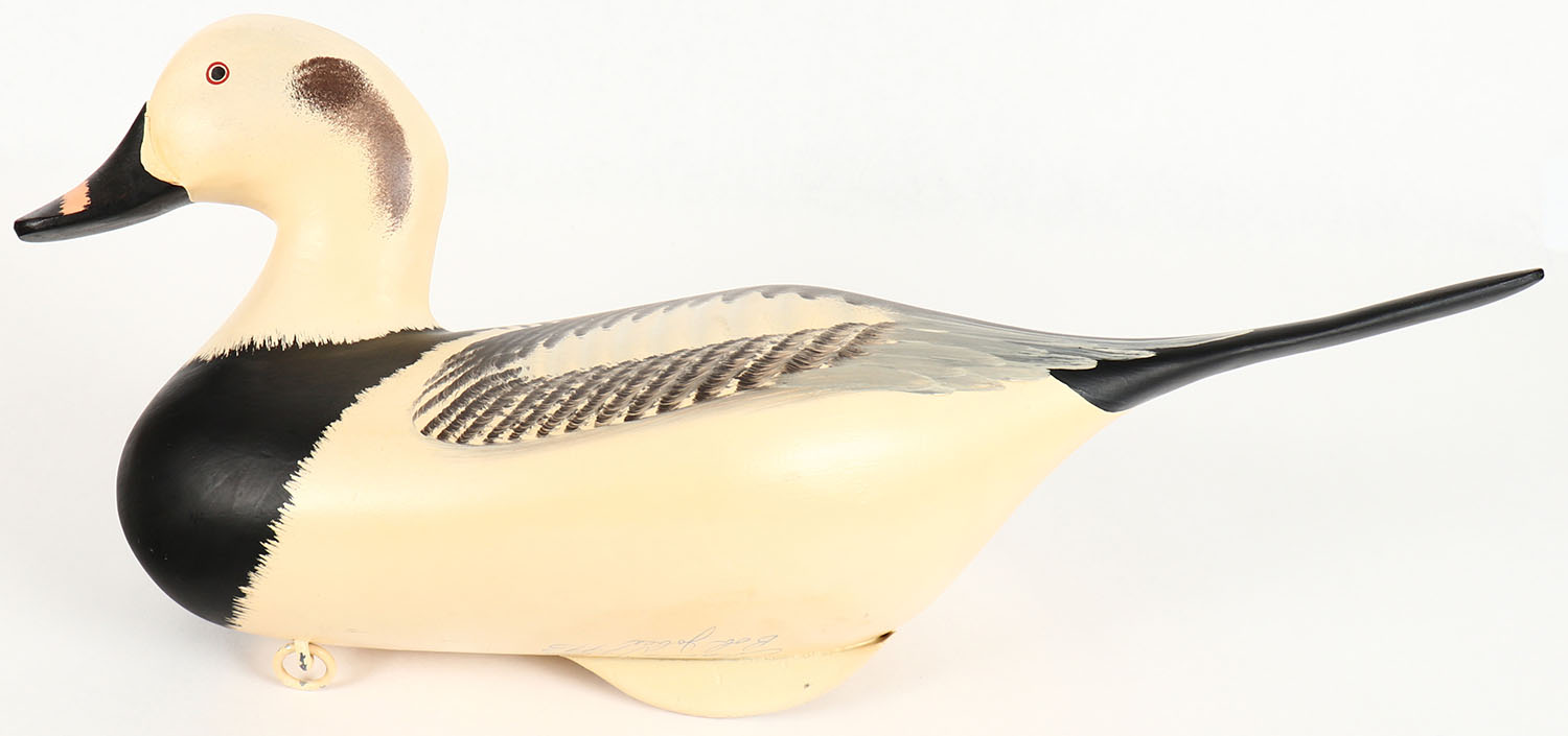 Old Squaw Drake by Charles Jobes & Bob Jobes, Havre De Grace, MD , painted eyes, solid wood, original paint, signed on bottom by CHARLES & BOB JOBES, structurally excellent, 18: OAL. Grade: Excellent ++ - Value: 40 to 100