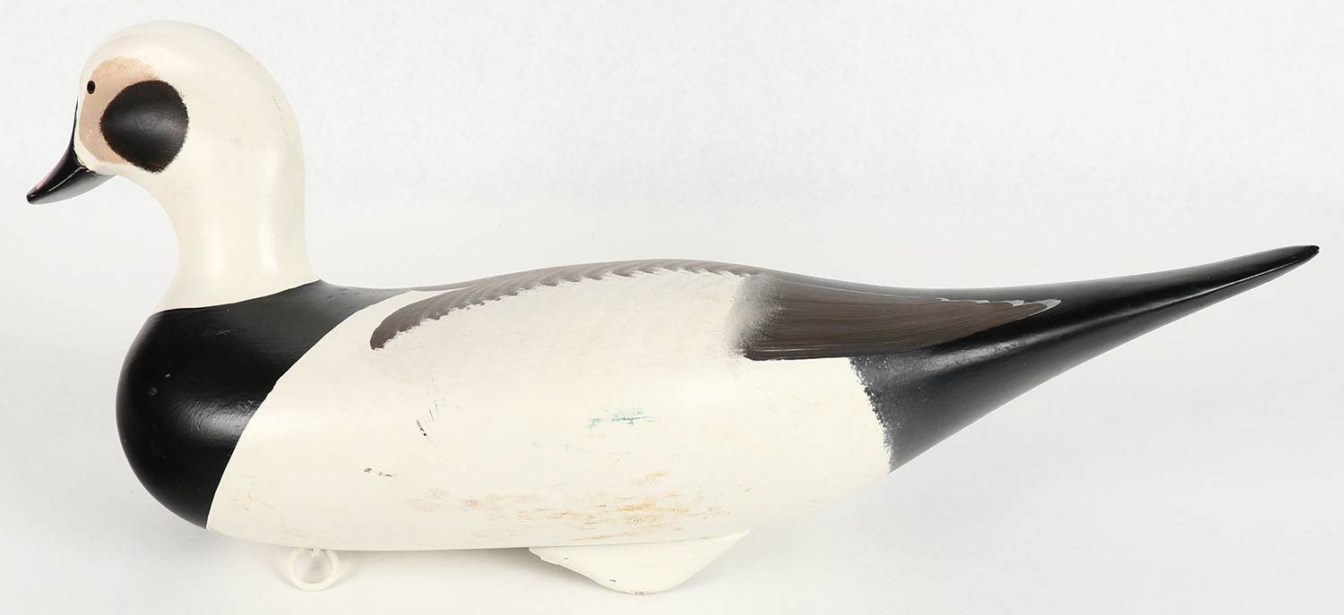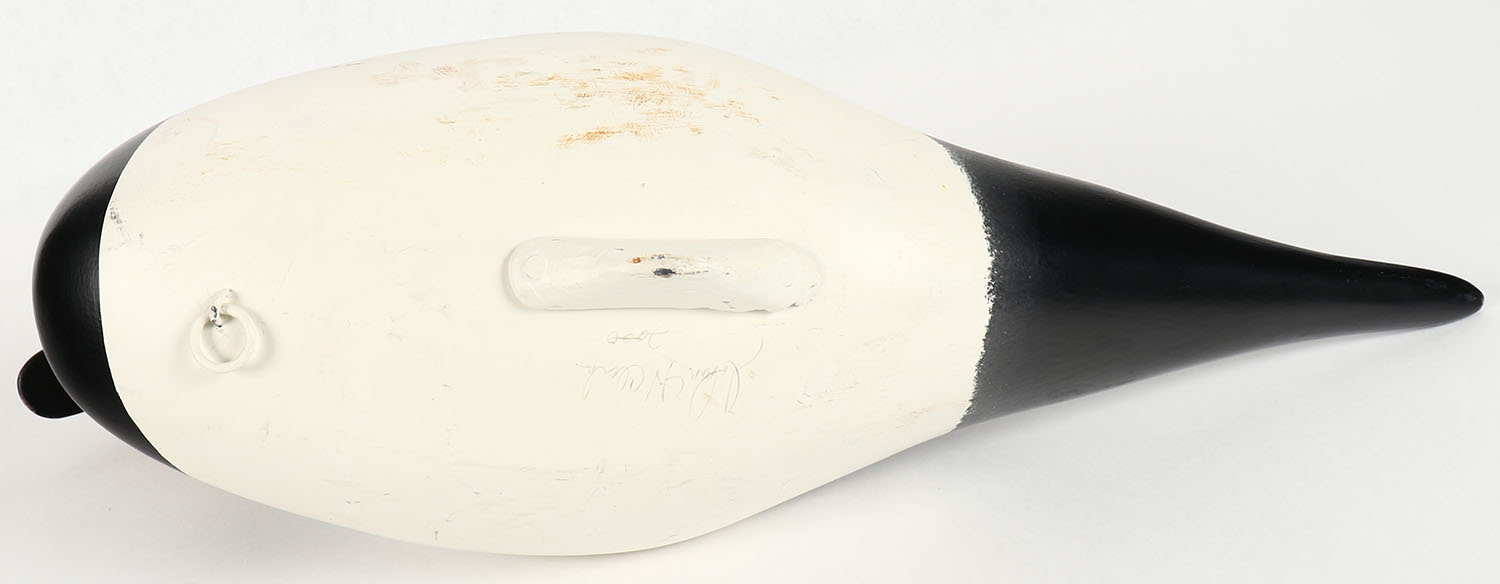 Old Squaw Drake by John H. Clark, Havre De Grace, MD, painted eyes, solid wood, original paint, structurally excellent, signed on bottom, 18 1/2'' OAL. Grade: Excellent + - Value: 40 to 80
