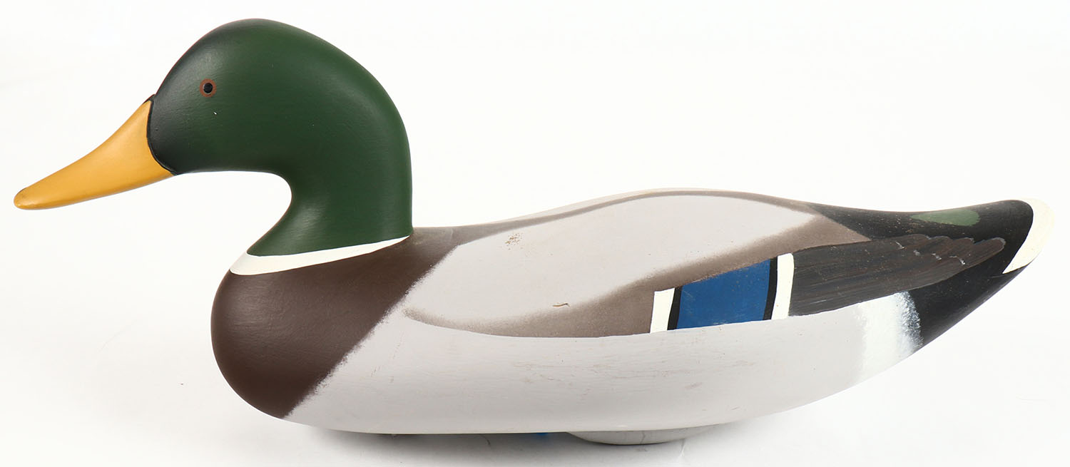 Mallard Drake by Bryan Bodt, Havre De Grace, MD, painted eyes, solid wood, original paint, structurally excellent, branded BODT on bottom, 16'' OAL. Grade: Excellent ++ - Value: 30 to 60
