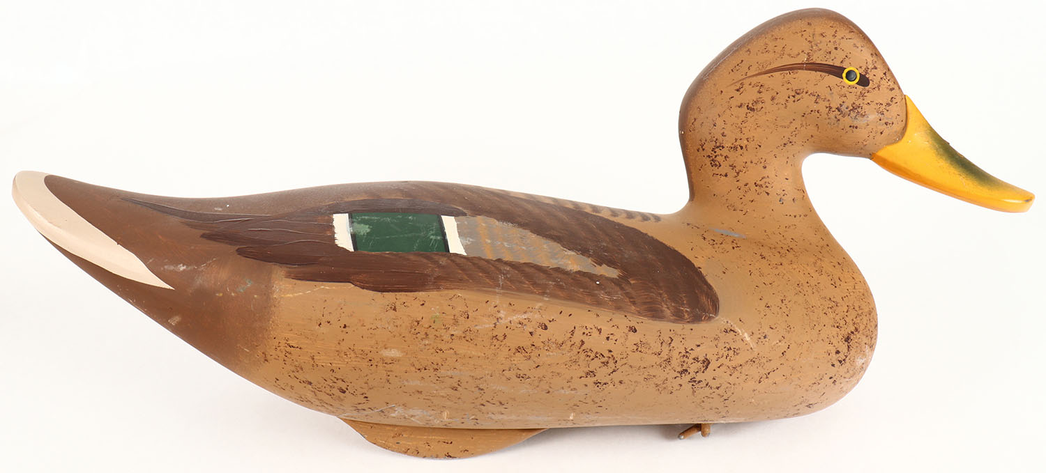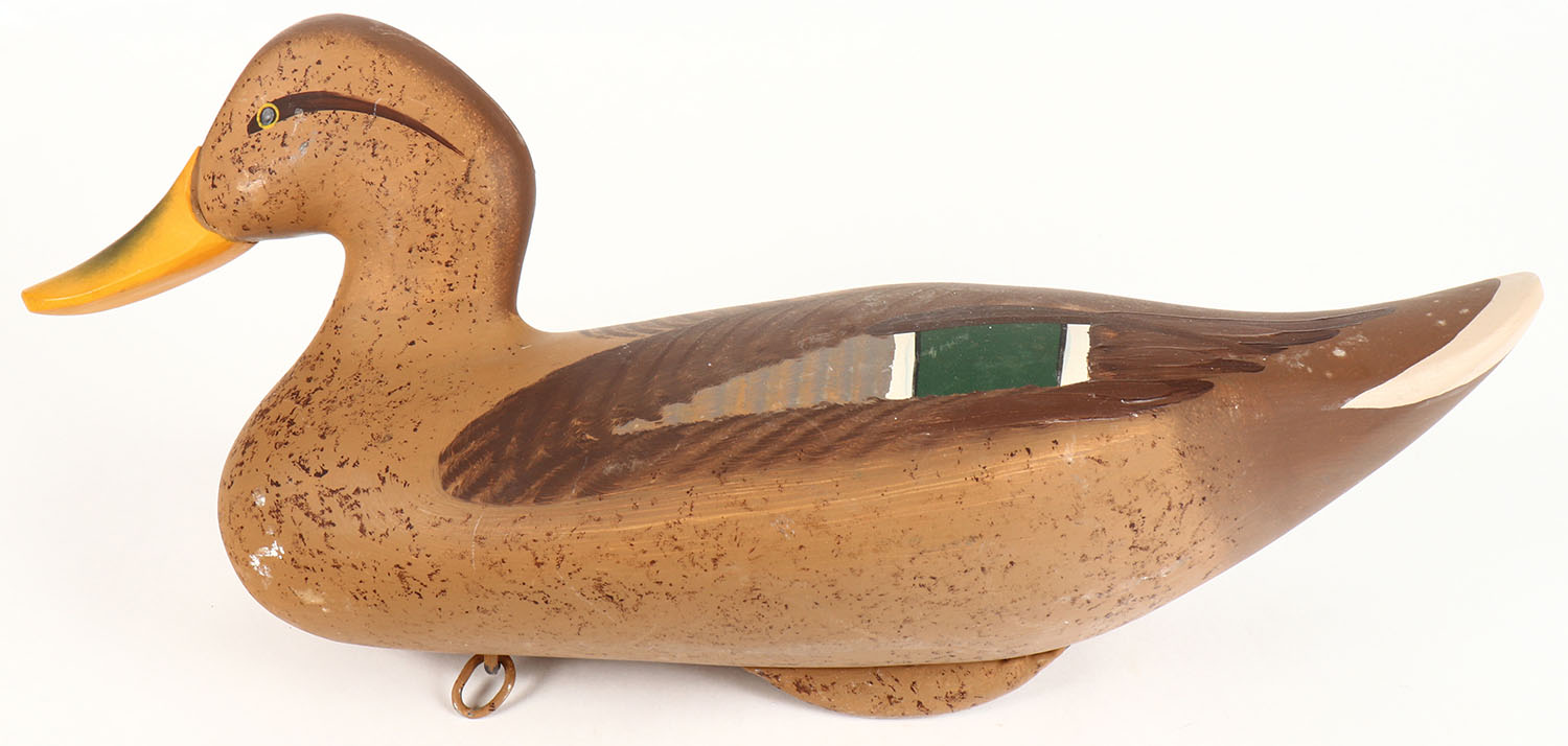 Mallard Hen by unknown maker from MD, PE, solid wood, original paint, structurally excellent, 17 1/4'' OAL. Grade: Excellent - Value: 20 to 40