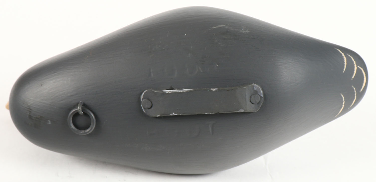 Coot by Bryan Bodt, Havre De Grace, MD, painted eyes, solid wood, original paint, structurally excellent, branded BODT on bottom, 11'' OAL. Grade: Excellent ++ - Value: 30 to 60