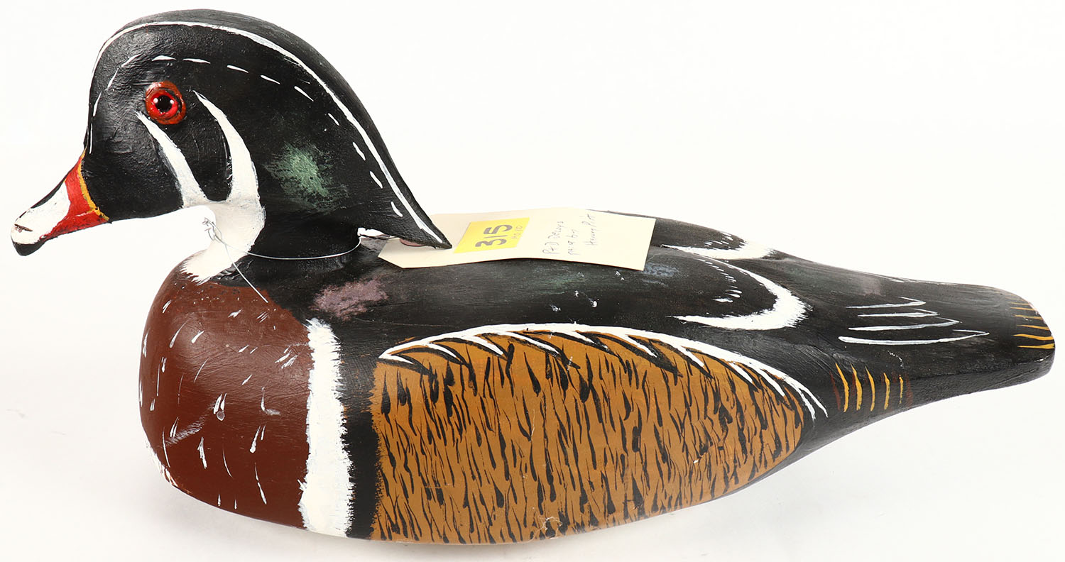 Woodduck Drake by Harvey Pitt P&D Decoys, No. 85 Duquoin, IL, GE Hollow Wood, excellent original paint, 14'' OAL. Grade: Excellent - Value: 30 to 90