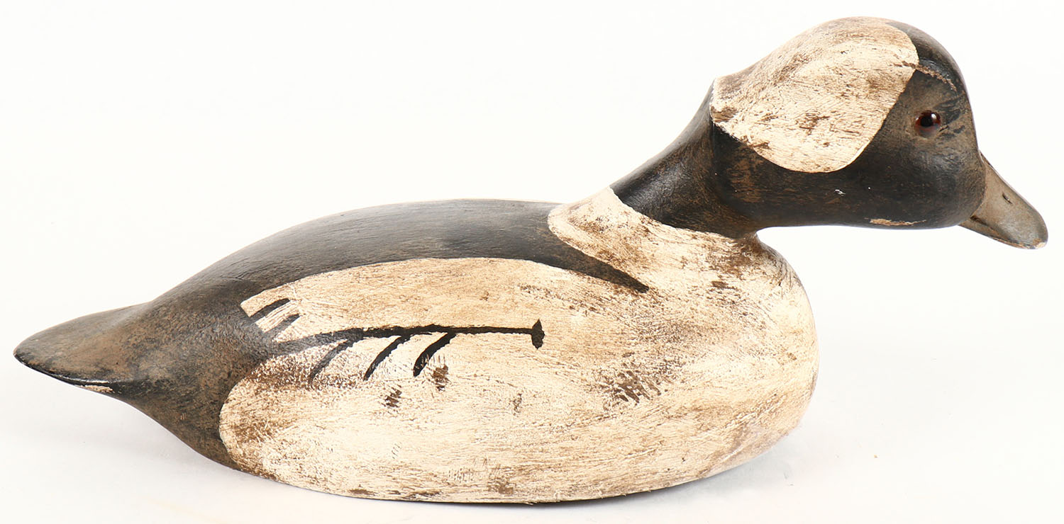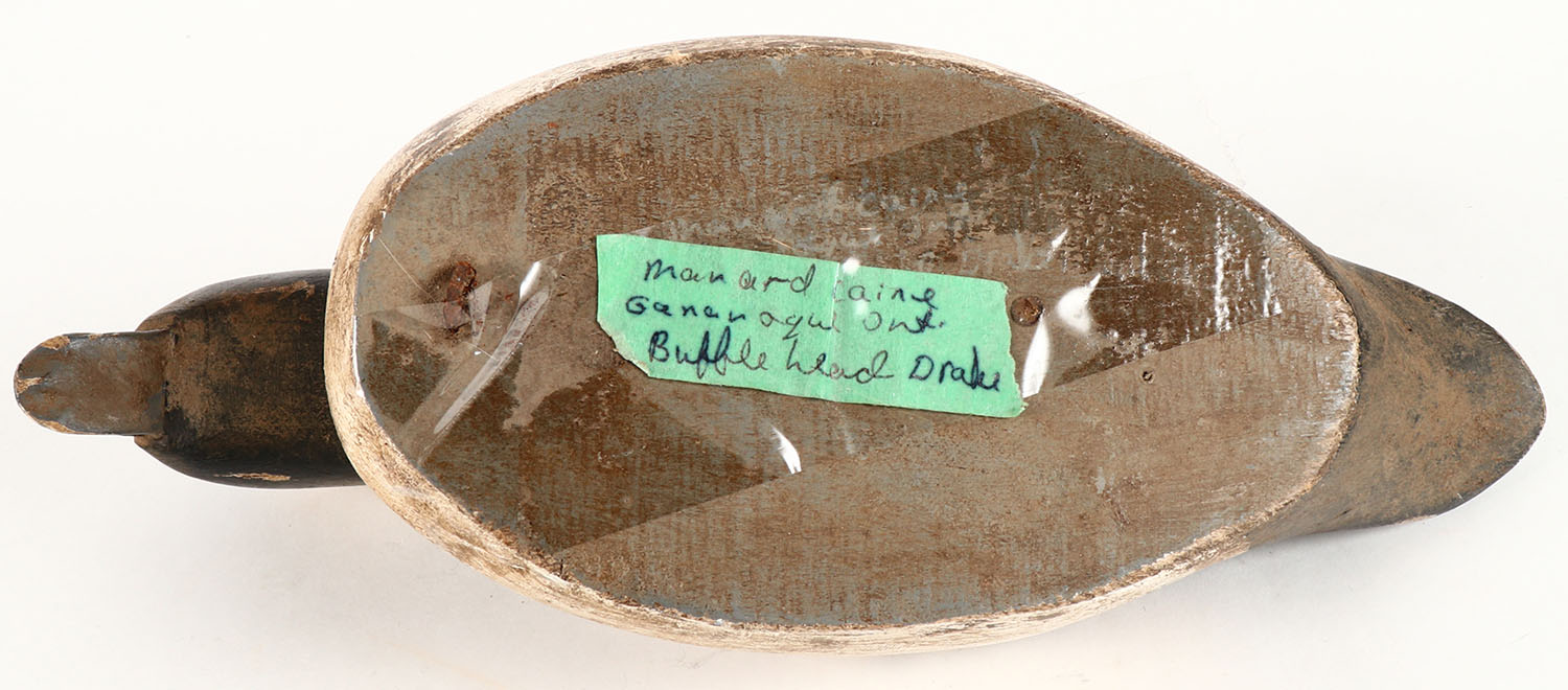 Bufflehead Drake by Maynard Caine, Gananoque, Ontario, GE, solid wood, original paint, structurally excellent, marked on bottom, 11 1/2'' OAL. Grade: Excellent - Value: 10 to 30