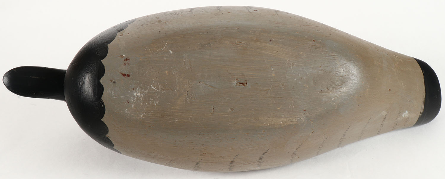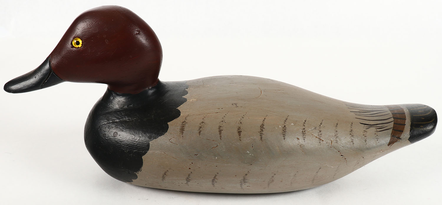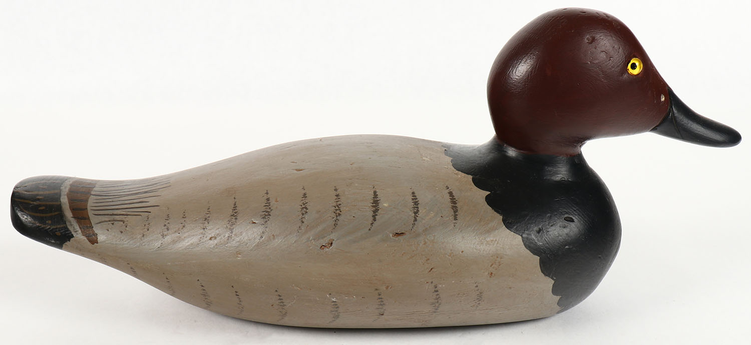 Canvasback Drake by Dodge Decoy Factory, Detroit, MI, 1883-1893, GE, solid wood, repaint, structurally excellent, 14'' OAL. Grade: Excellent - Value: 30 to 60