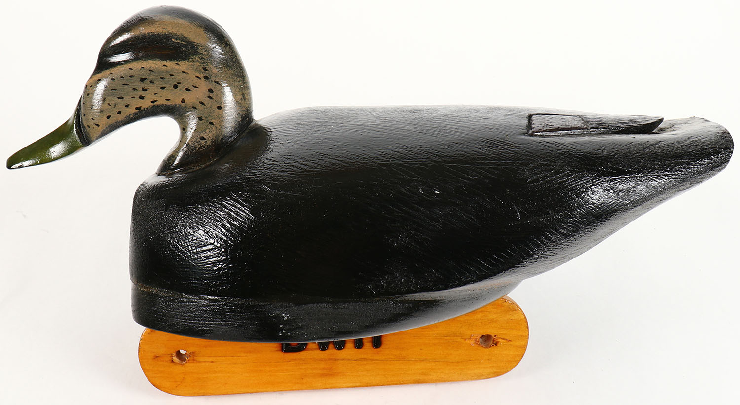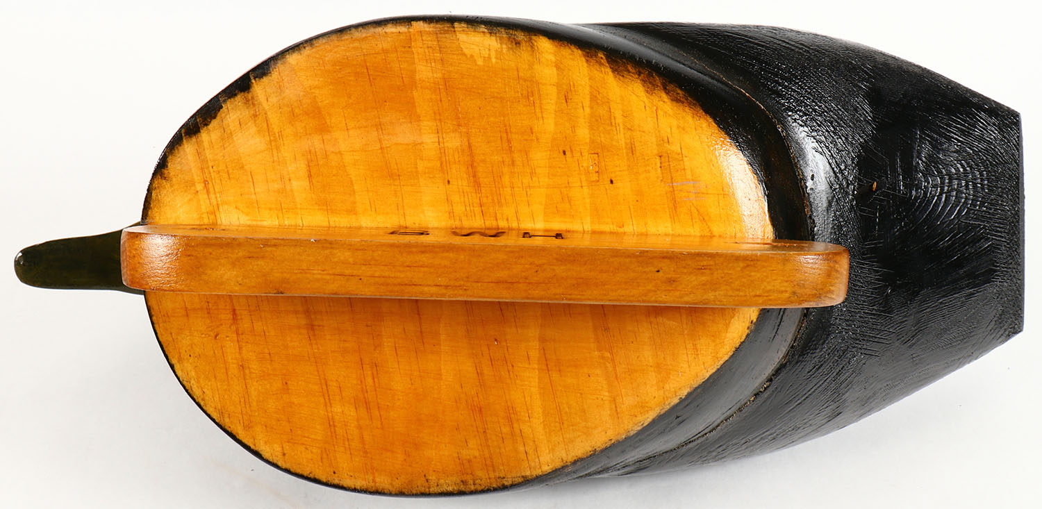 Black Duck by BWH, no eyes, hollow wood, original paint, structurally excellent, 17 1/2'' OAL. Grade: Excellent ++ - Value: 20 to 40