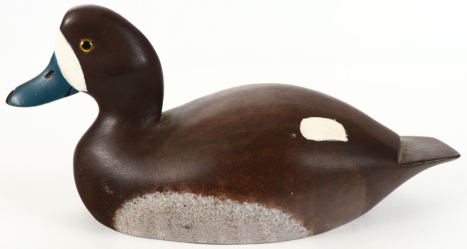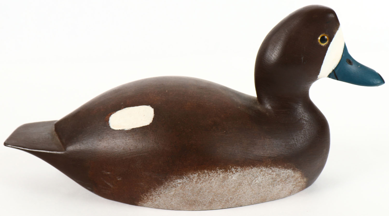 Bluebill Hen by unknown maker, GE, solid wood, original paint, structurally excellent, 12'' OAL. Grade: Excellent - Value: 10 to 30
