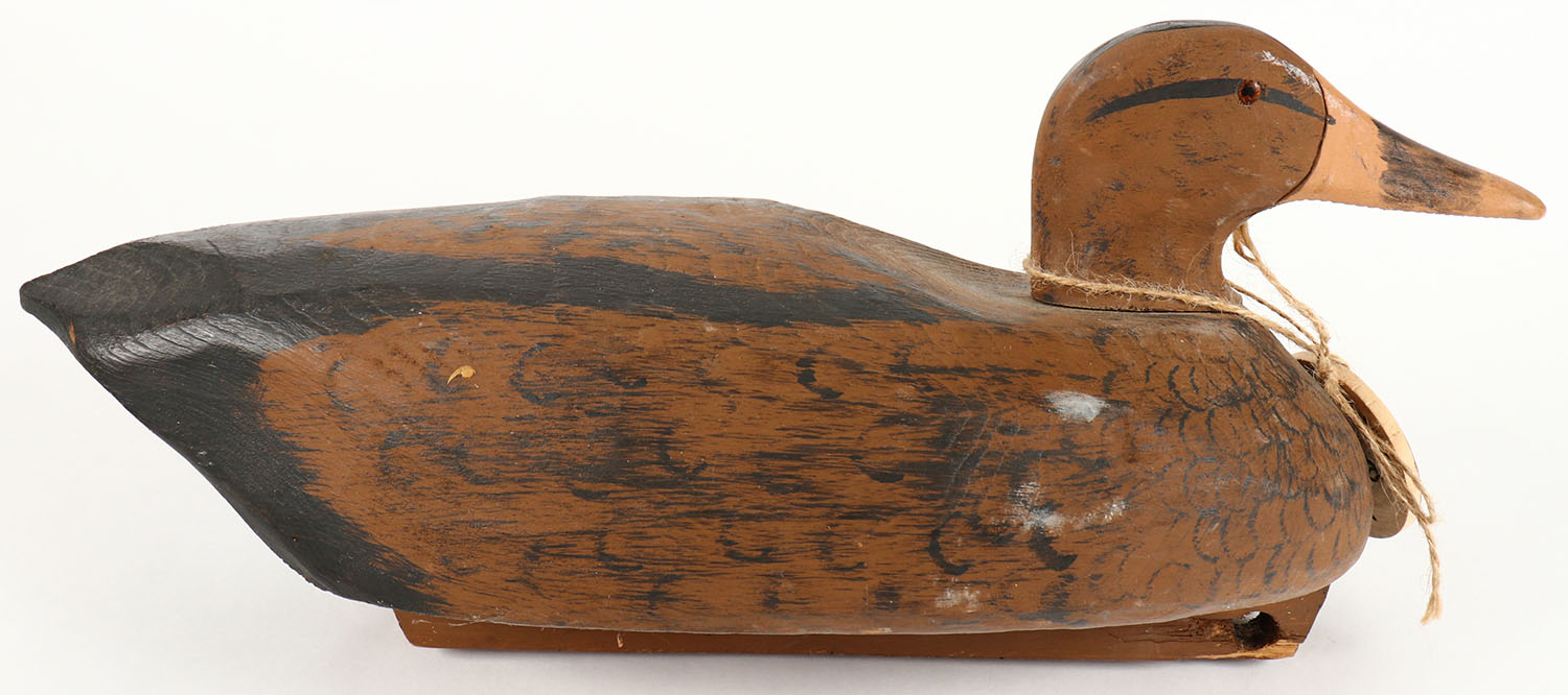 Mallard Hen by DA Decoy Shop, GE, solid wood, original paint, structurally excellent, 16 1/2'' OAL. Grade: Excellent - Value: 20 to 40