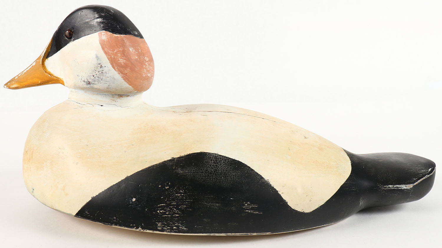 Eider Drake by unknown maker, GE, solid wood, original paint, structurally excellent, 15 1/2'' OAL. Grade: Excellent - Value: 20 to 40