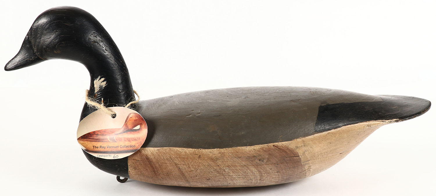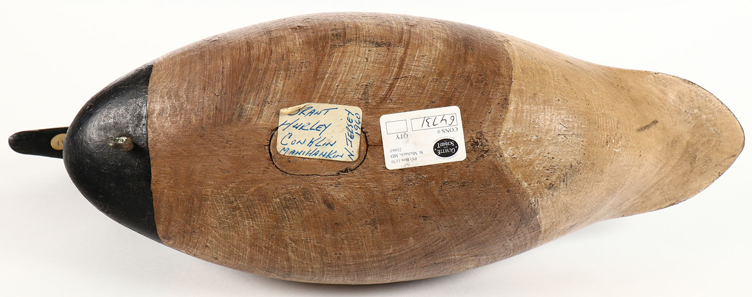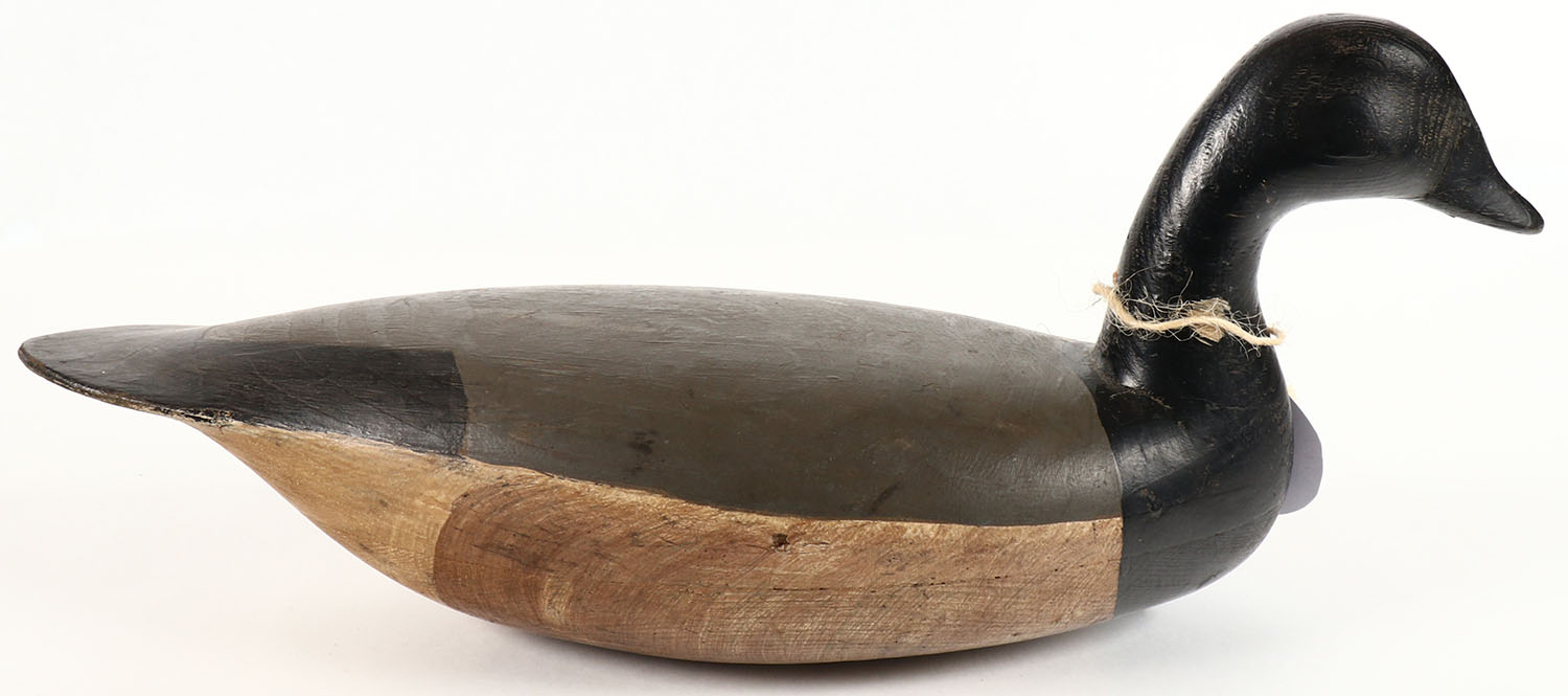 Brant by Hurley Conklin, Manihankin, NJ, no eyes, hollow wood, original paint, structurally excellent, bill has hair line crack, 17'' OAL. Grade: Excellent - Value: 200 to 500