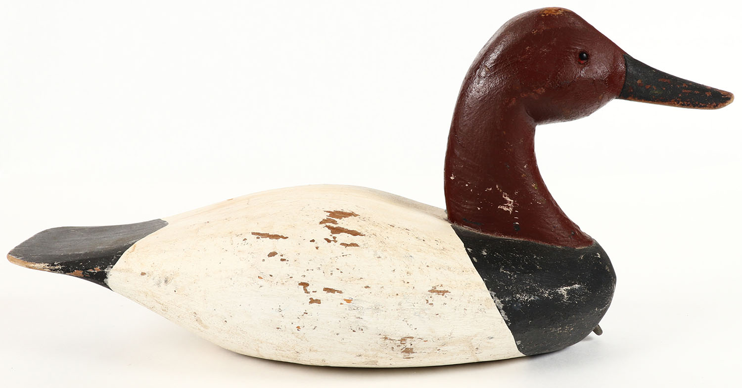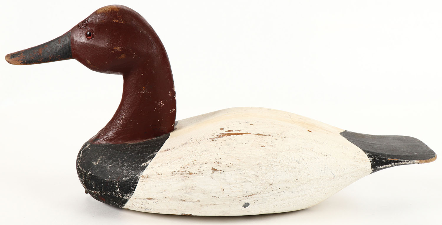 Canvasback Drake by unknown maker, GE, solid wood, original paint, structurally excellent, 13 1/2'' OAL. Grade: Excellent - Value: 20 to 70
