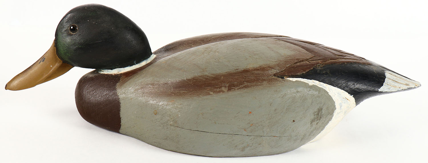 Mallard Drake by TK, GE, solid wood, orignal paint, structurally excellent, 15 1/2'' OAL,. Grade: Excellent - Value: 20 to 40