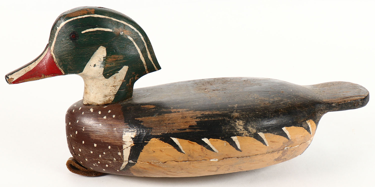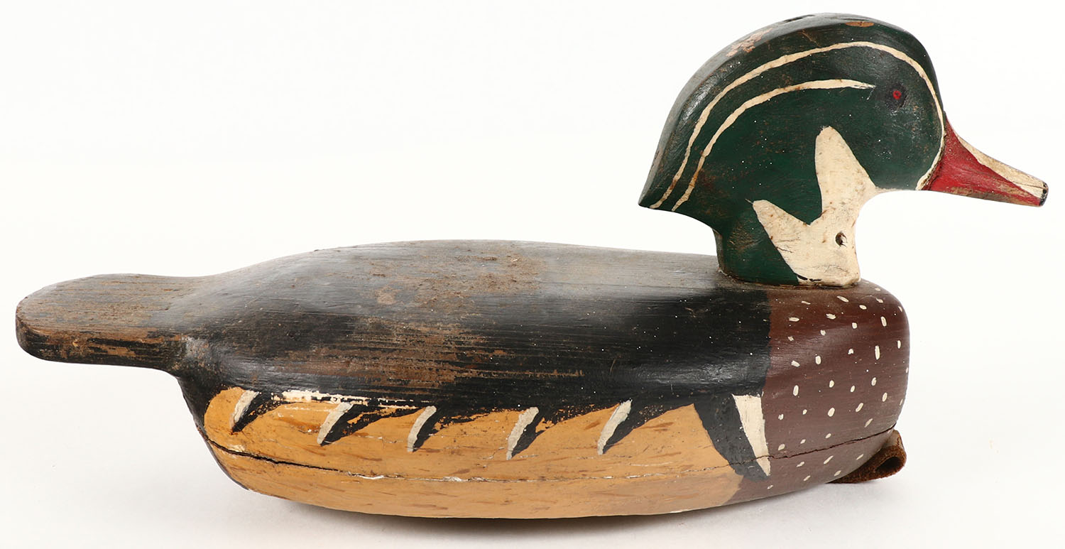 Woodduck Drake by unknown maker, PE, solid wood, orignal paint, structurally excellent, 10 1/2'' OAL,. Grade: Very Good ++ - Value: 20 to 40