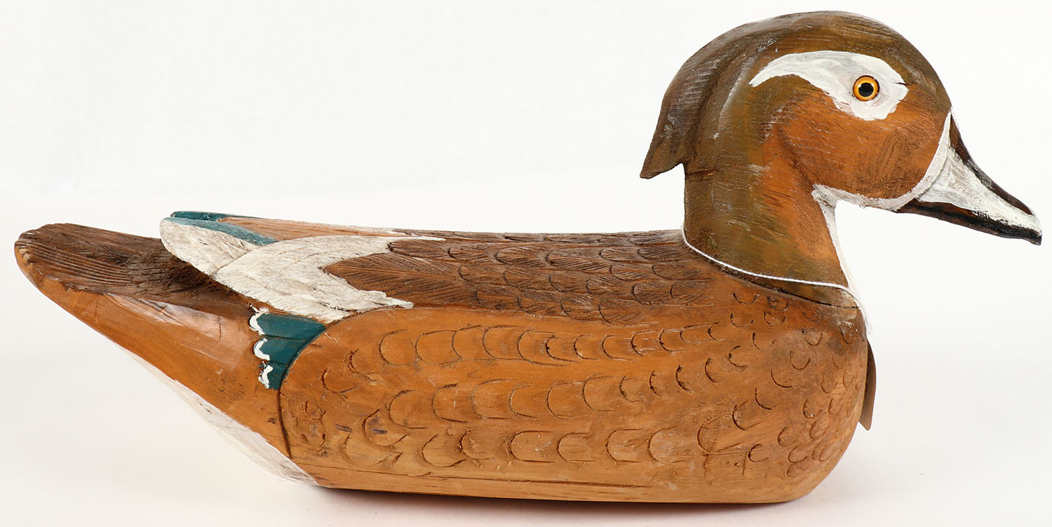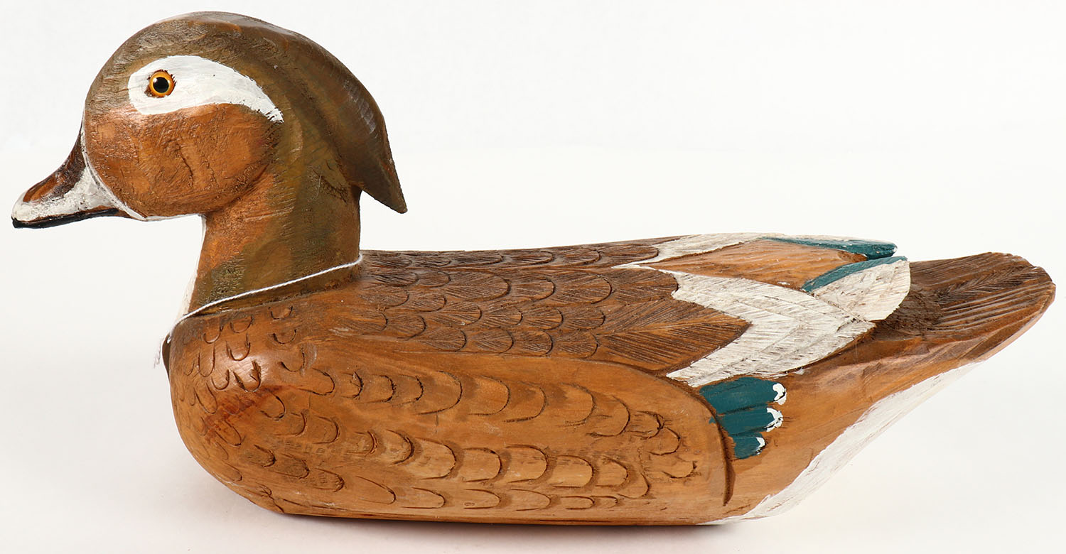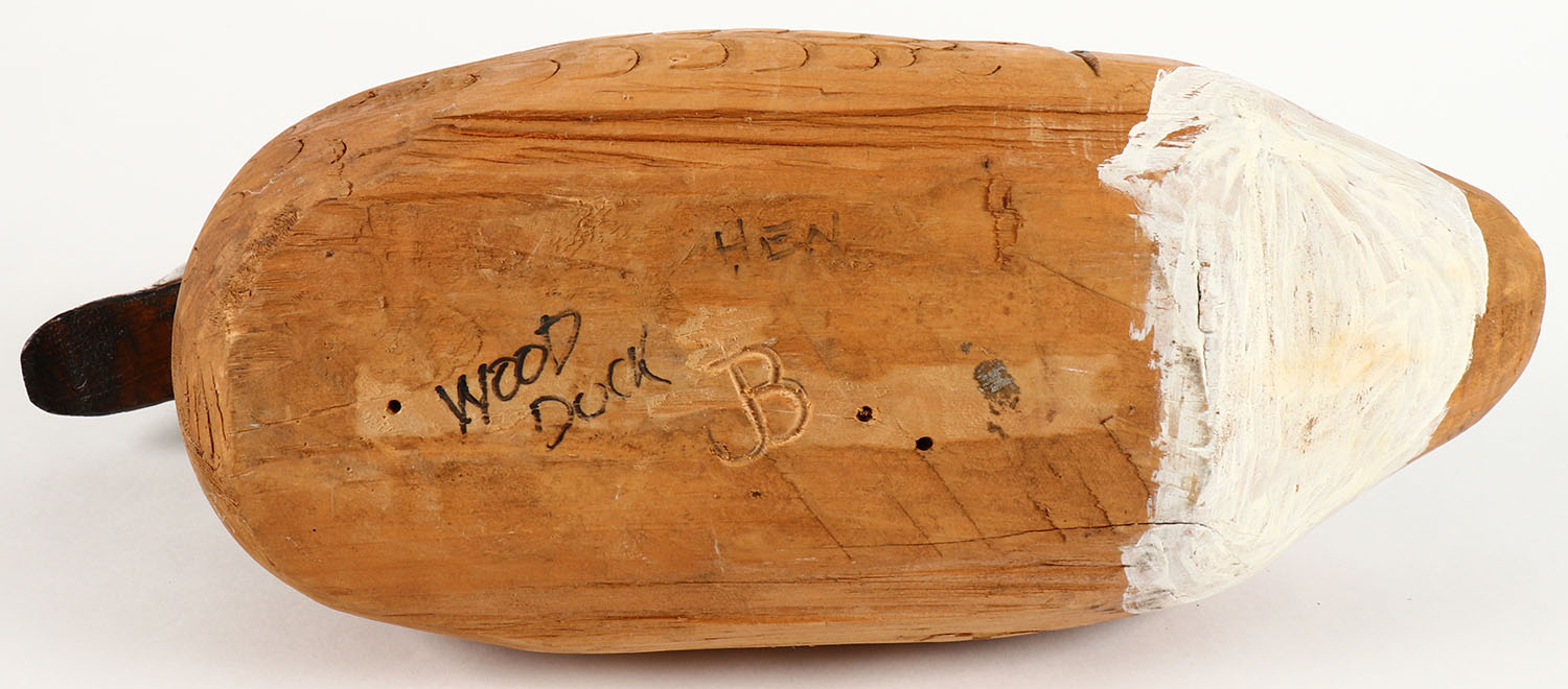 Woodduck Hen by unknown maker, GE, solid wood, orignal paint, structurally excellent, branded JB, 16'' OAL,. Grade: Excellent - Value: 20 to 40