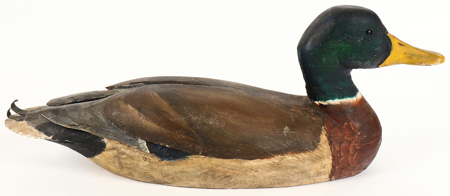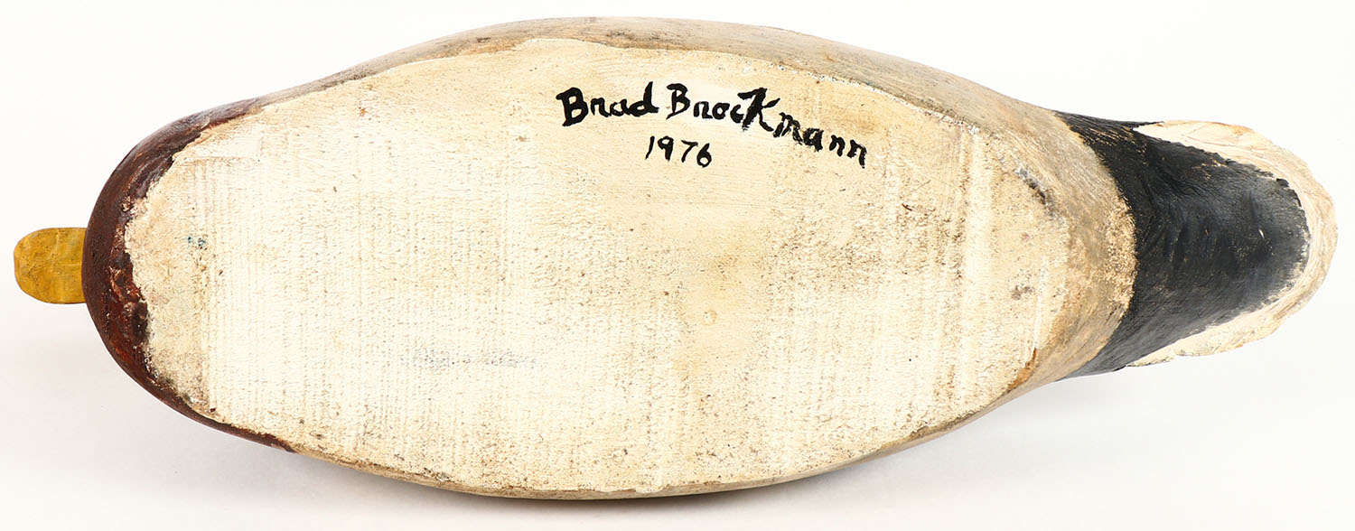 Mallard Drake by Brad Brockmann, GE, solid wood, orignal paint, structurally excellent, signed on bottom, 16'' OAL,. Grade: Excellent - Value: 20 to 40