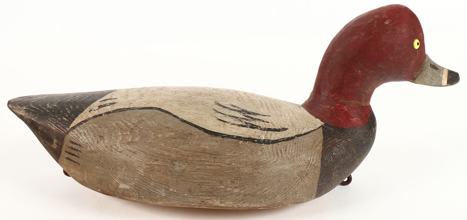 Redhead Drake by unknown maker, GE, solid wood, original paint, structurally excellent, 13 1/2'' OAL. Grade: Excellent - Value: 20 to 40