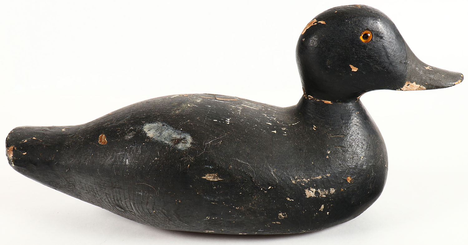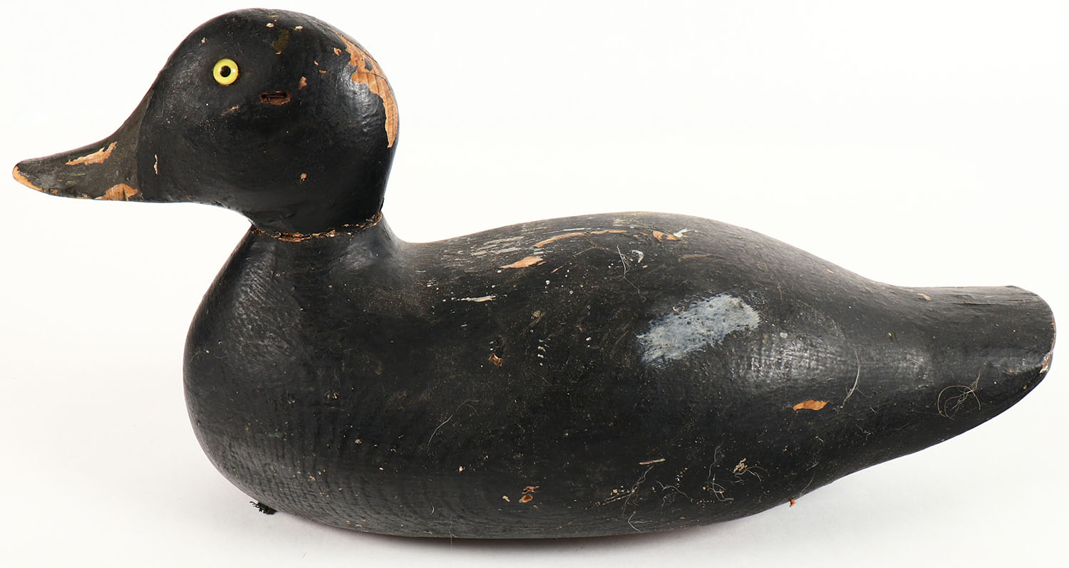Bluebill Drake by unknown maker, GE, solid wood, old repaint, structurally excellent, 14'' OAL. Grade: Very Good ++ - Value: 20 to 60