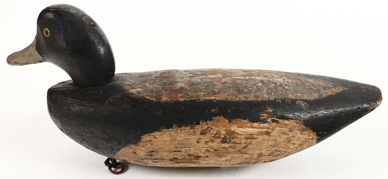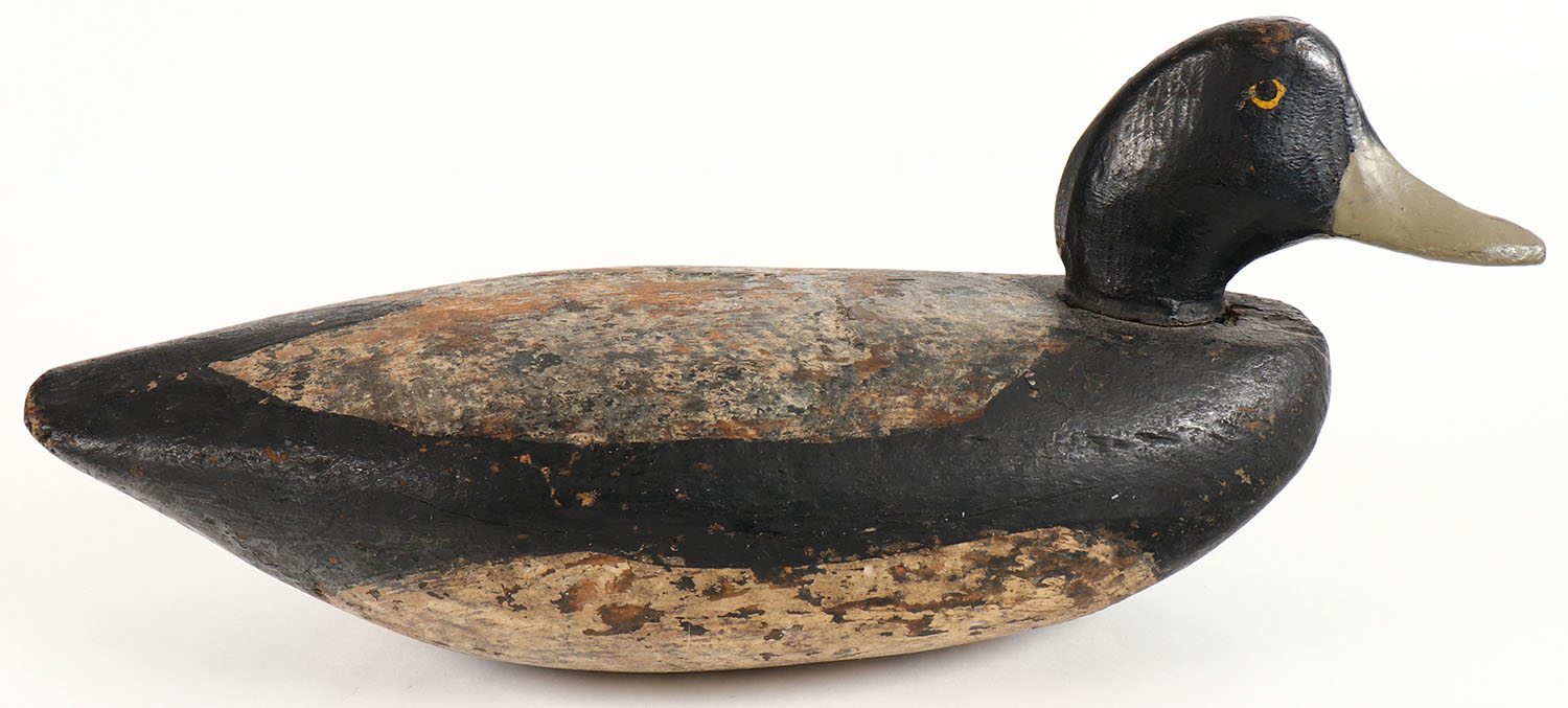 Bluebill Drake by unknown maker, PE, solid wood, original paint, structurally excellent, 14 1/2'' OAL. Grade: Excellent - Value: 20 to 40