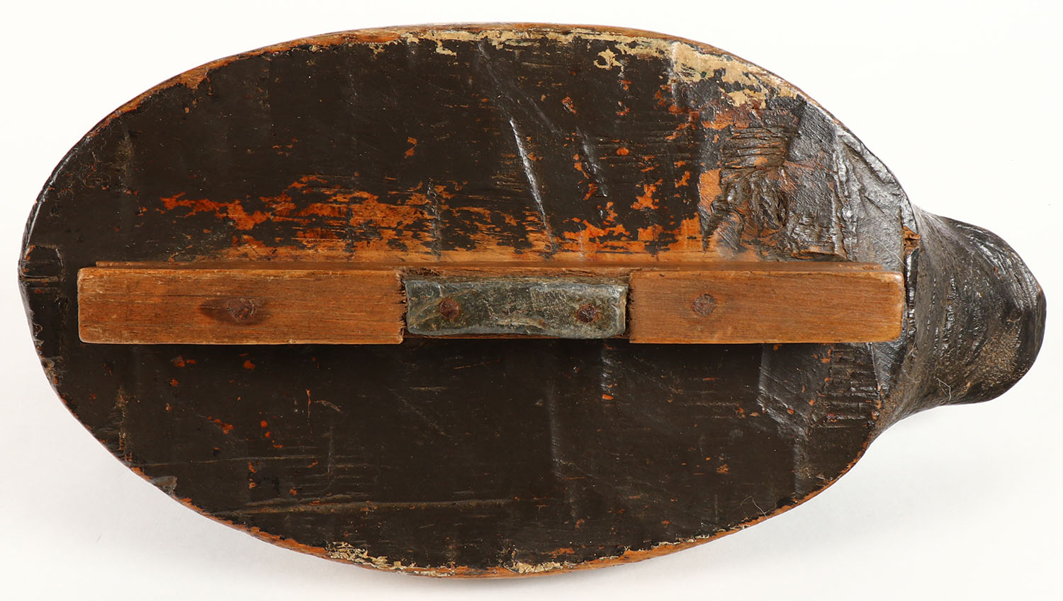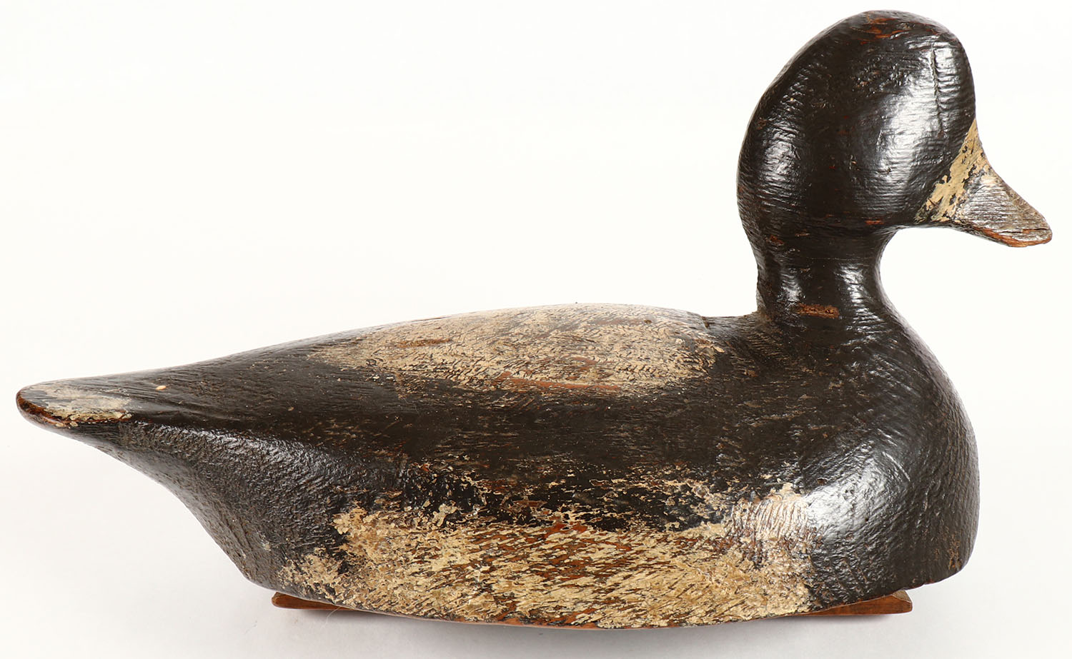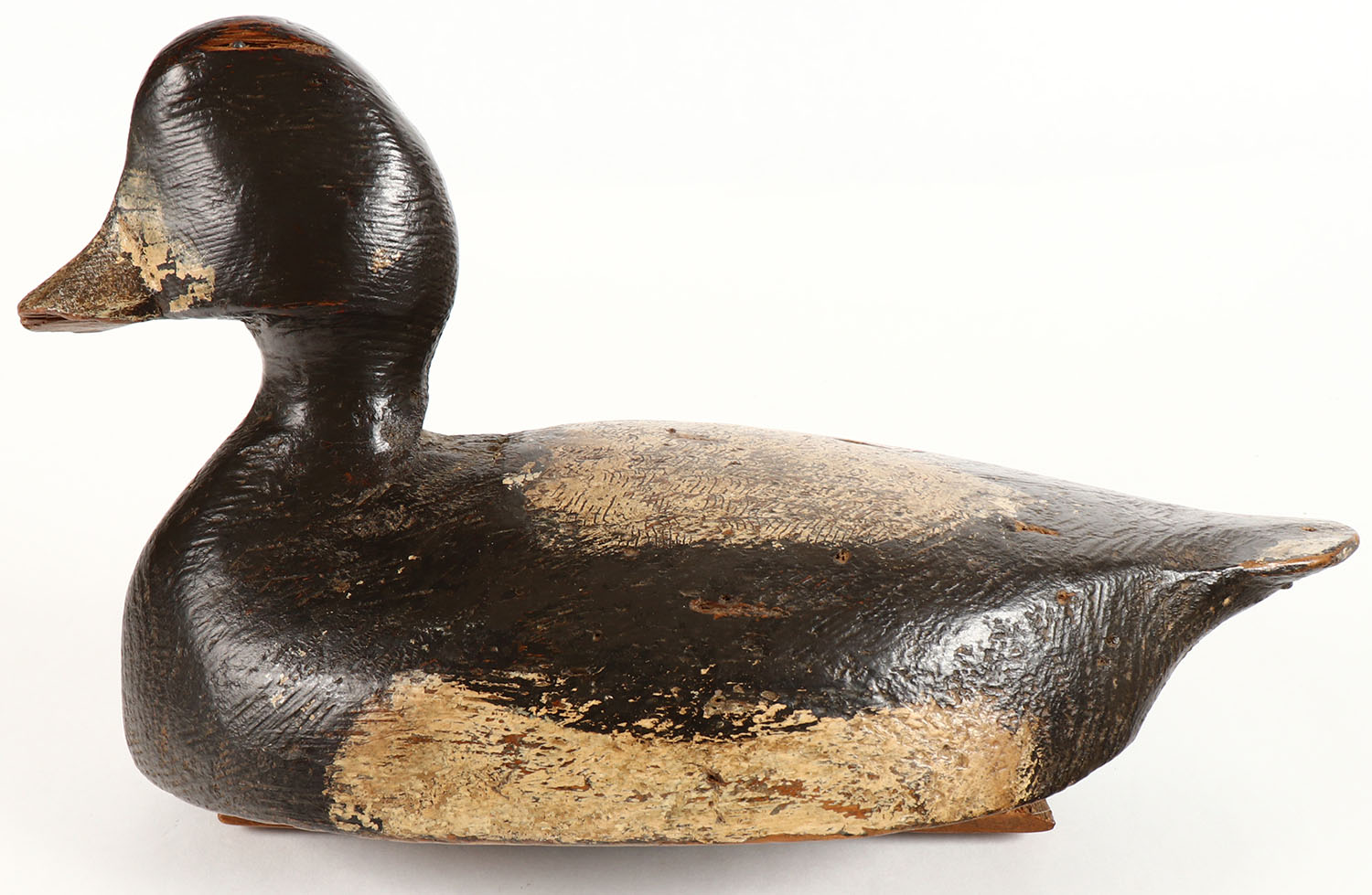 Bluebill Hen by unknown maker, no eyes, solid wood, original paint, structurally excellent, very old chip to bill, 12 1/2'' OAL. Grade: Very Good ++ - Value: 20 to 40
