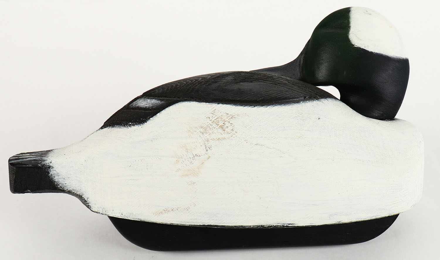 Preening Bufflehead Drake by BH, PE, solid wood, original paint, structurally excellent, 11'' OAL. Grade: Excellent - Value: 20 to 40