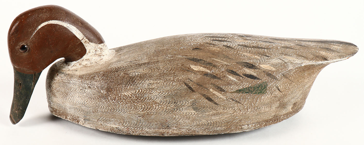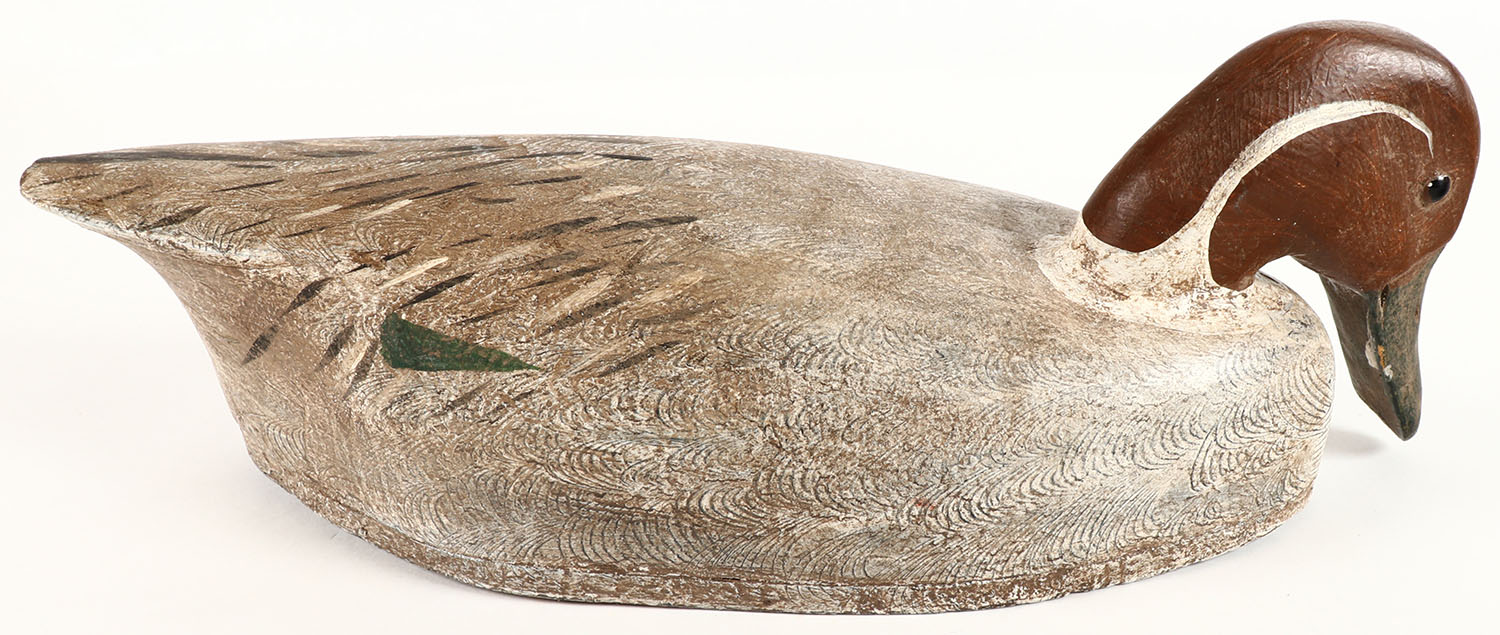 Pintail Drake by unknown Canadian flats maker, GE, hollow wood, apparent repaint, structurally excellent, 15 1/2'' OAL. Grade: Excellent - Value: 20 to 40