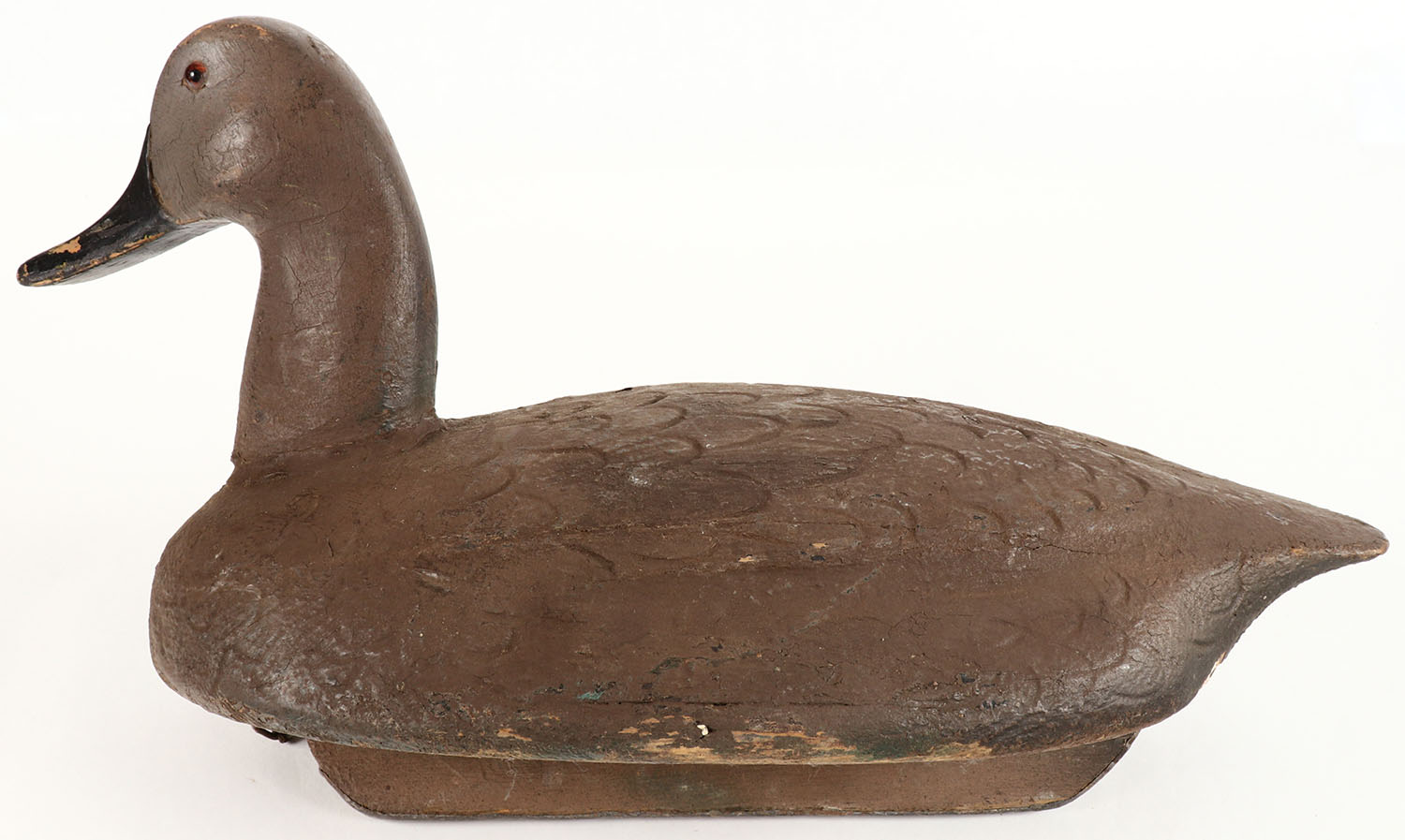 Canvasback Hen by unknown maker, GE, solid wood, original paint, structurally excellent, 17 1/2'' OAL. Grade: Excellent - Value: 20 to 40