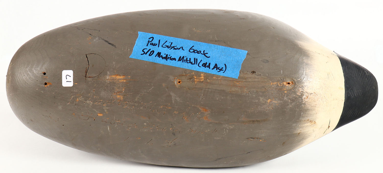 Canada Goose by R. Madison Mitchell, Havre de Grace, MD, PE, solid wood, original paint, signed on bottom, 21'' OAL. Grade: Excellent - Value: 100 to 300