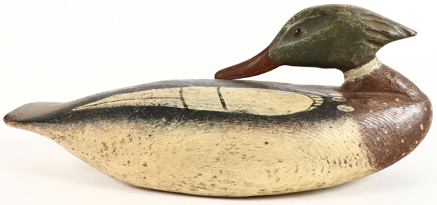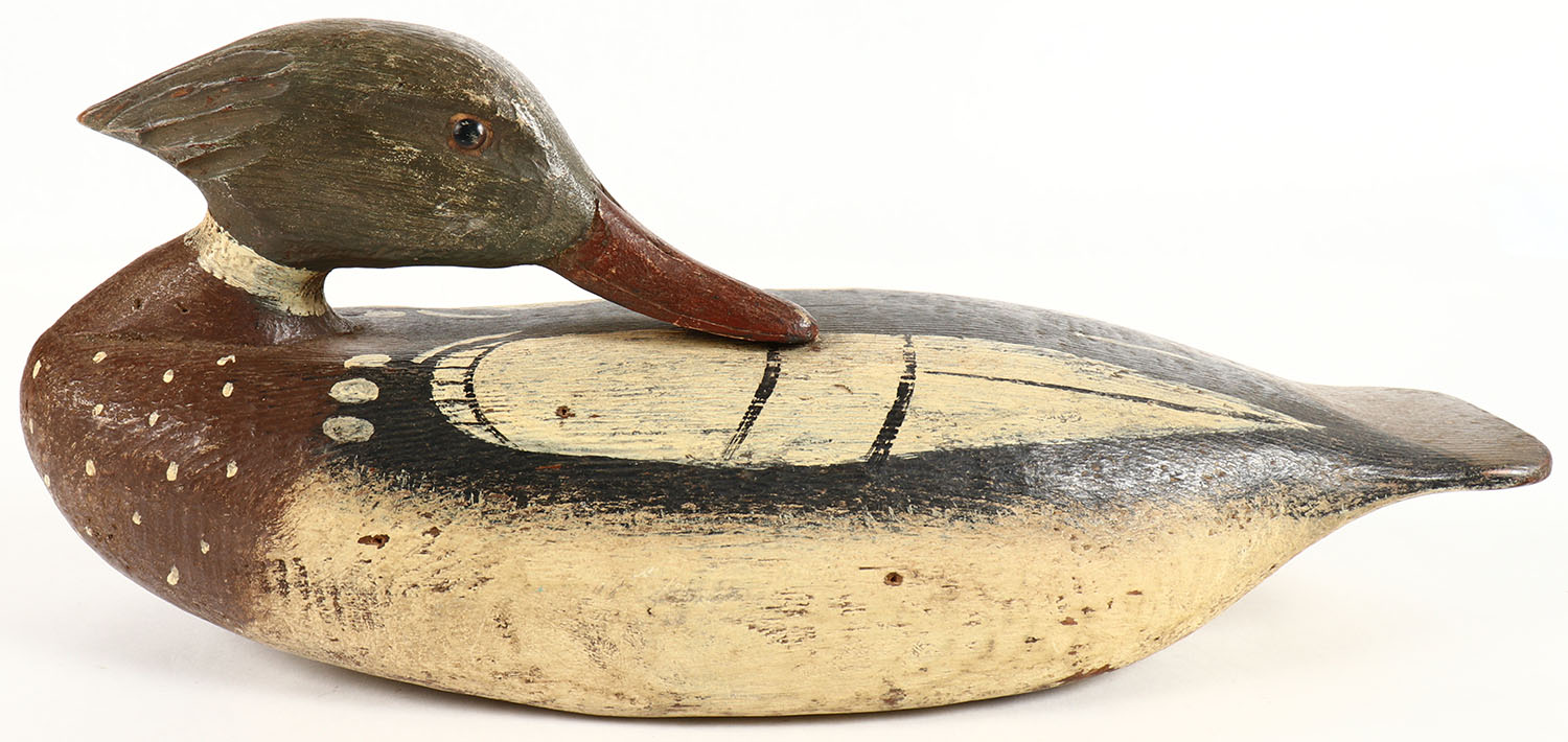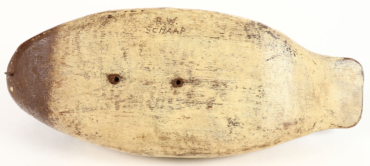 Preening Woodduck Drake by R.W. Schaap, TE, soldi wood, original paint, nice feather detail, structurally excellent, 13'' OAL. Grade: Excellent - Value: 70 to 200