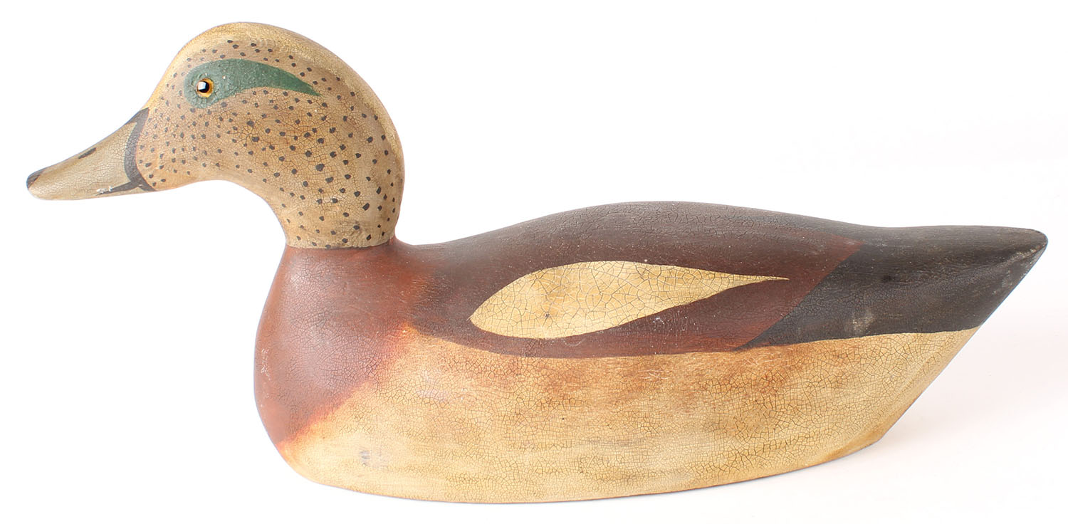 Widgeon Drake by PK, GE, solid wood, original paint, branded PK on bottom, 14 1/2'' OAL. Grade: Excellent - Value: 20 to 40