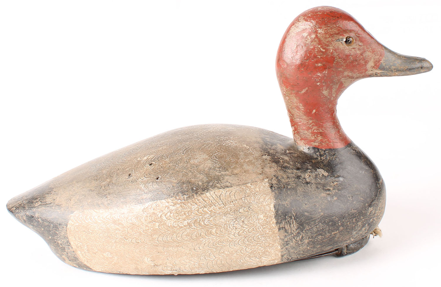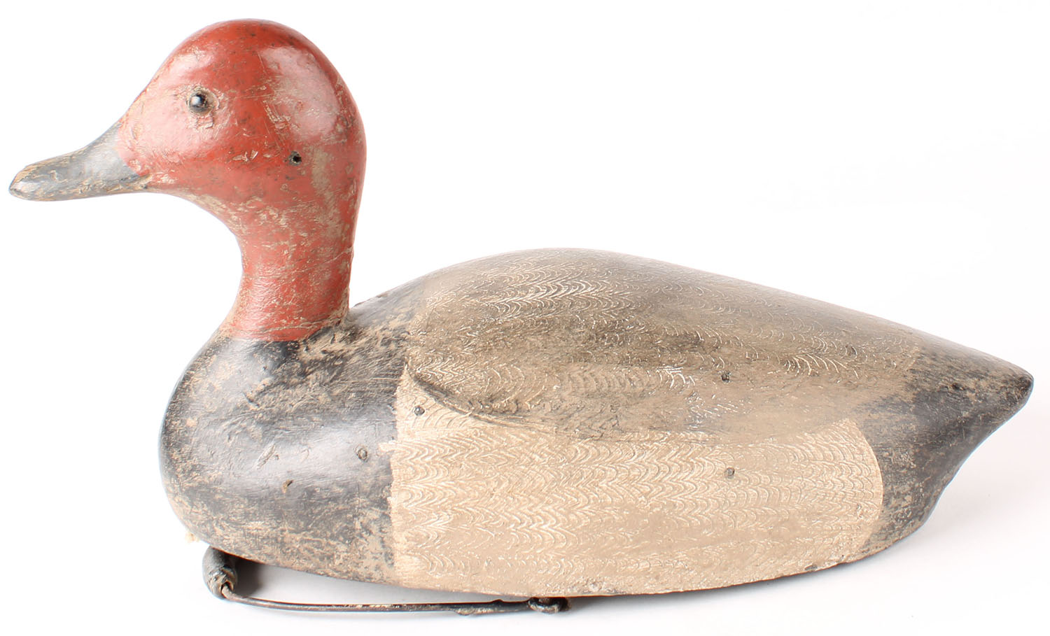 Redhead Drake by Don Reid, Ontario, circa 1930's, GE, solid wood, original comb paint, has swing weight, 13'' OAL. Grade: Very Good ++ - Value: 100 to 300