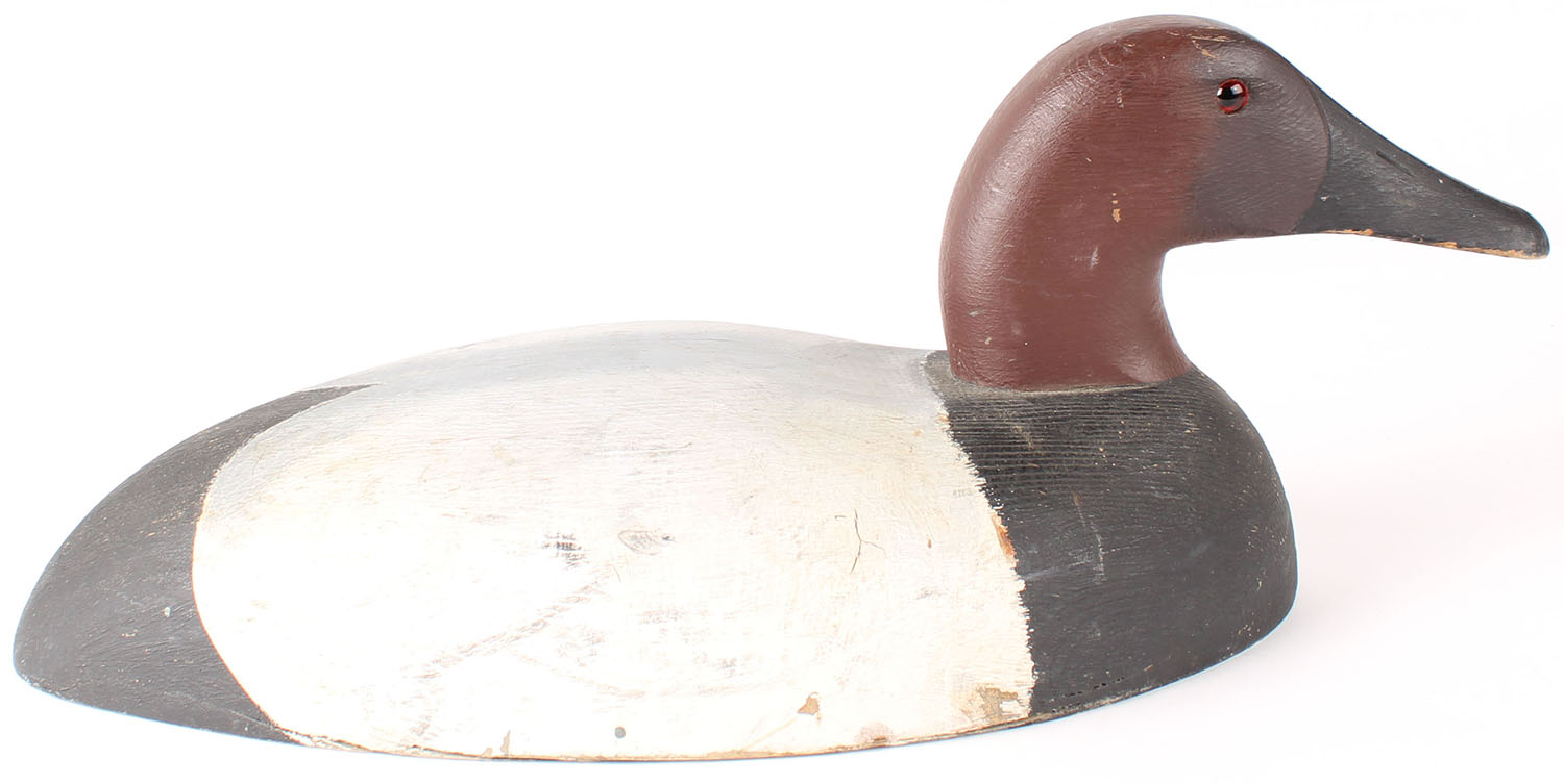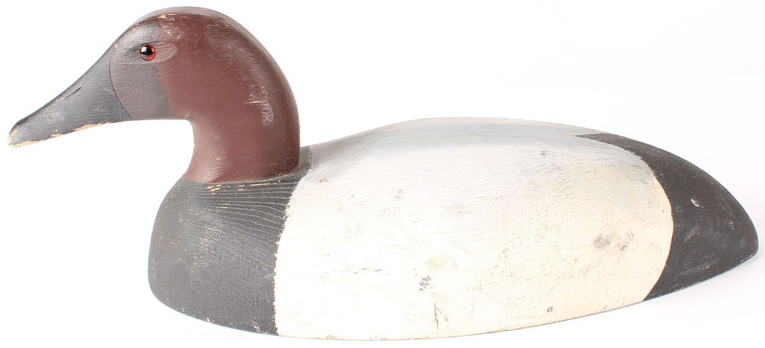 Canvasback Drake by Len Suzor, Canada, GE, solid wood, original paint, 17'' OAL. Grade: Excellent - Value: 50 to 100