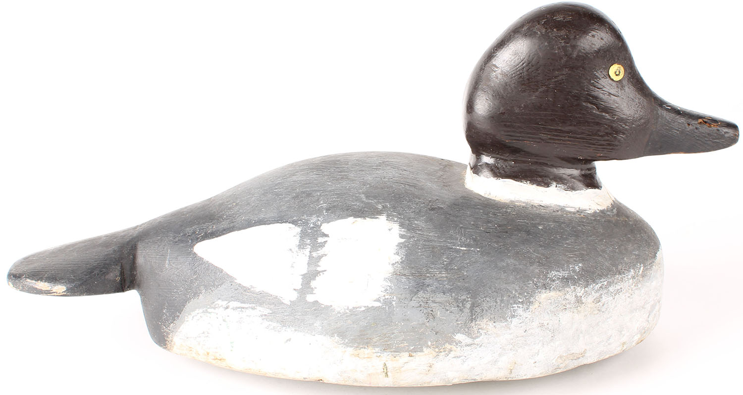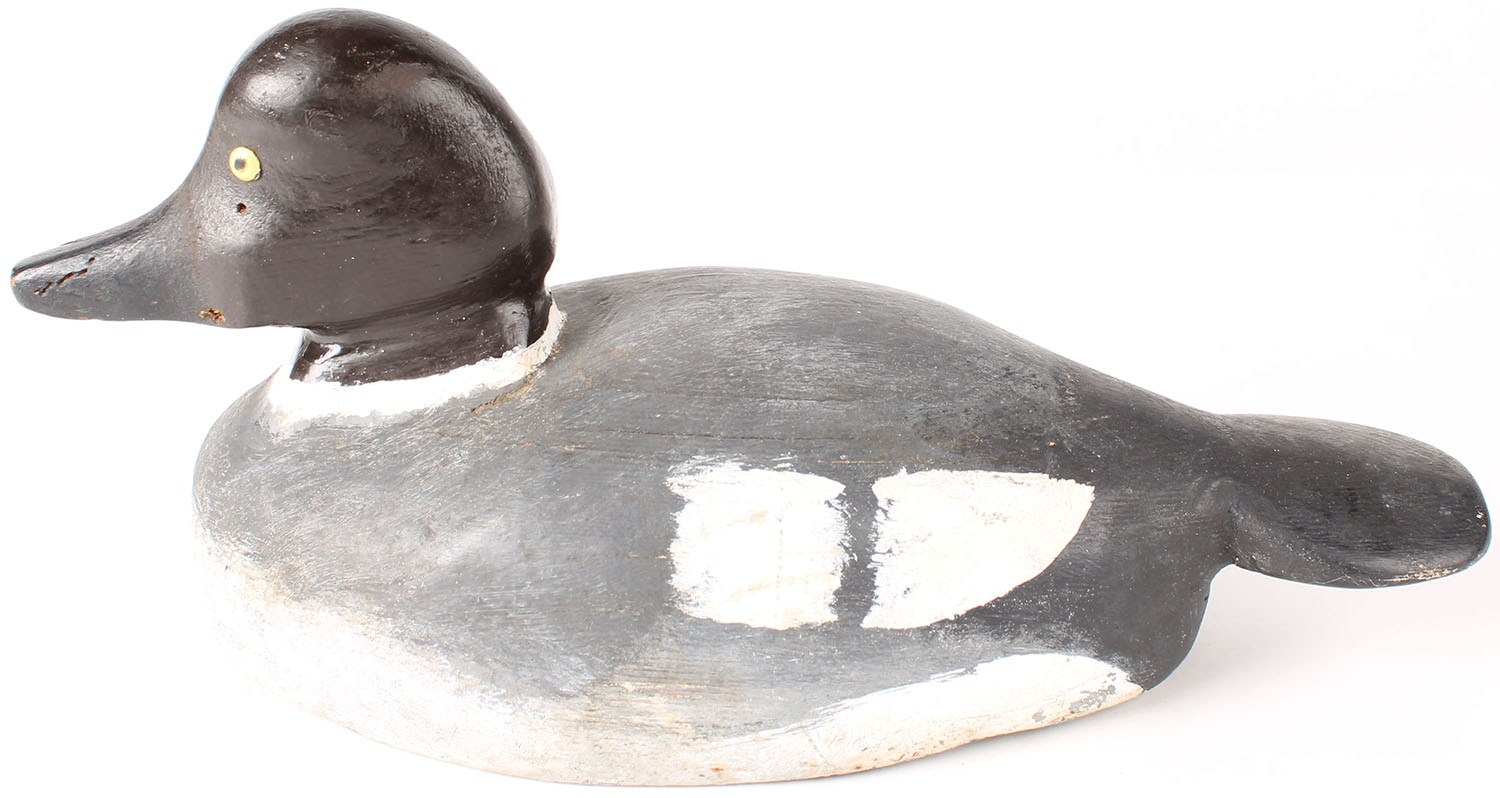 Goldeneye Hen by unknown maker, PE, solid wood, original paint, 13'' OAL. Grade: Excellent - Value: 20 to 40