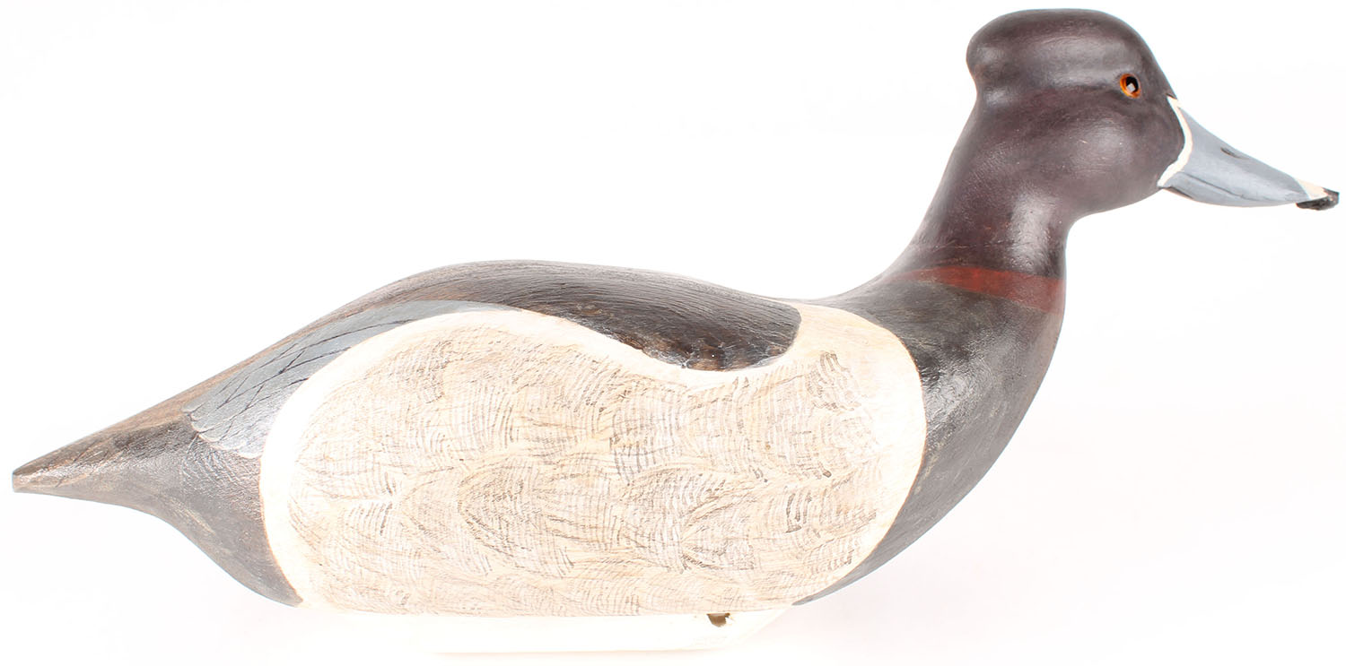 Swimming Ringneck Drake by Stor Johann, GE, hollow wood, original paint, 16 1/2'' OAL. Grade: Excellent ++ - Value: 70 to 200