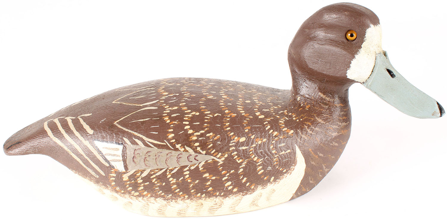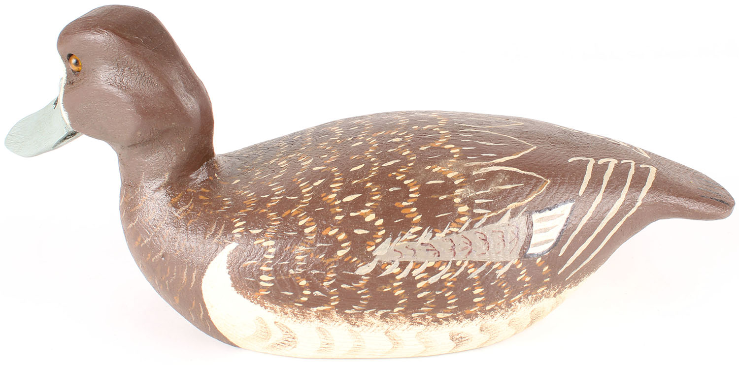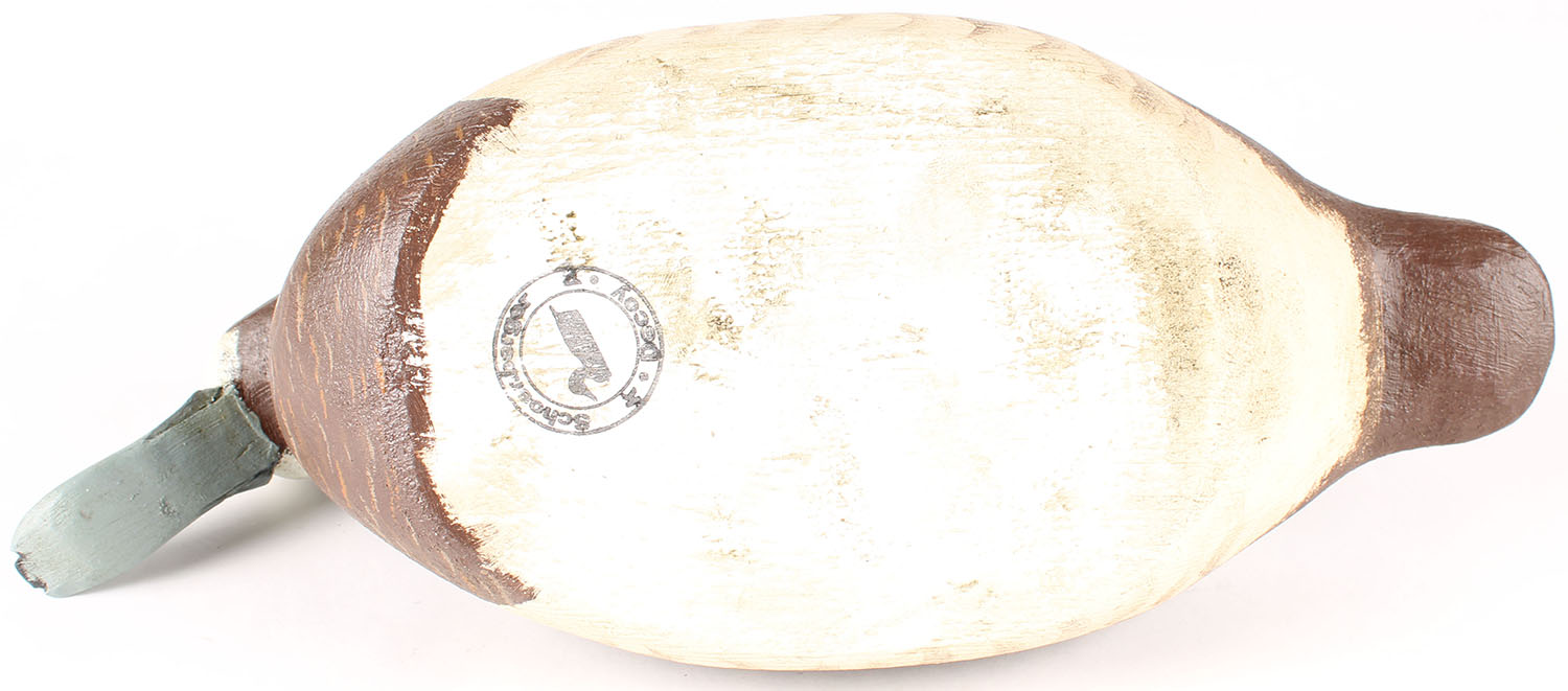 Bluebill Hen by Schoenberger, GE, hollow wood, excellent original paint, stamped on bottom, 16'' OAL. Grade: Excellent ++ - Value: 20 to 40