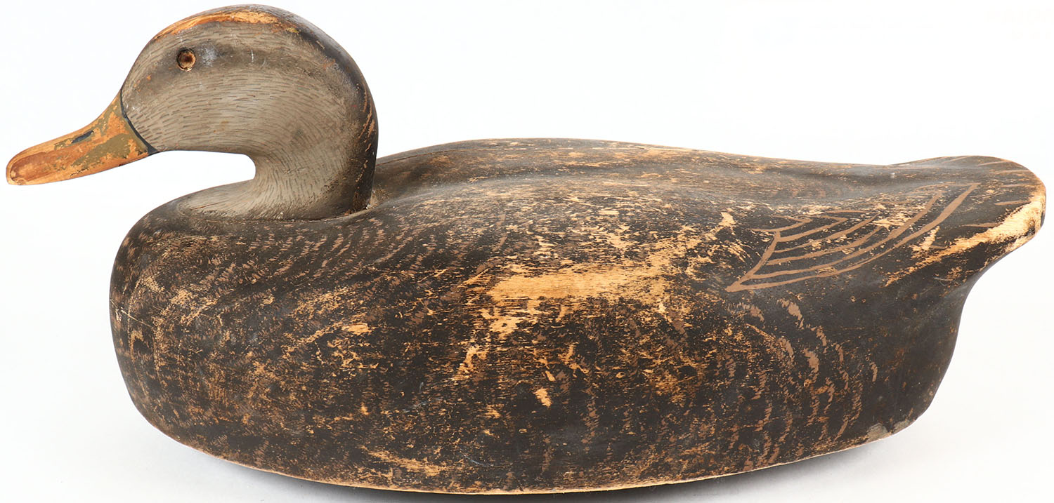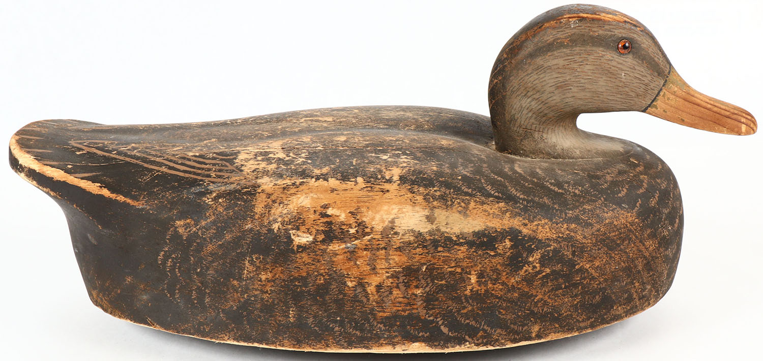 Mallard Hen by Wildfolwer, GE (one is missing), solid wood, orignal paint shows wear, 18 1/2'' OAL. Grade: Very Good ++ - Value: 30 to 60