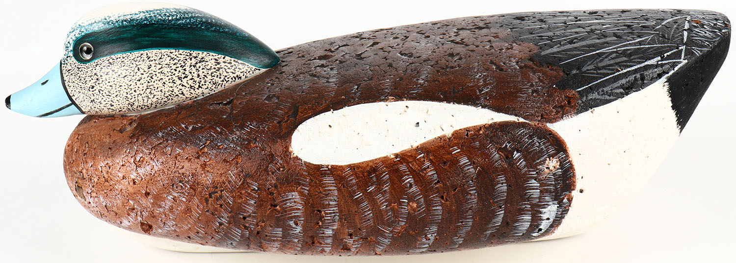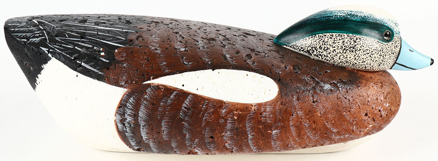 Widgeon Drake by Richard Korte, Olympia WA, GE, solid cork, mint orignal paint, 16'' OAL. Grade: MINT - Value: 40 to 80